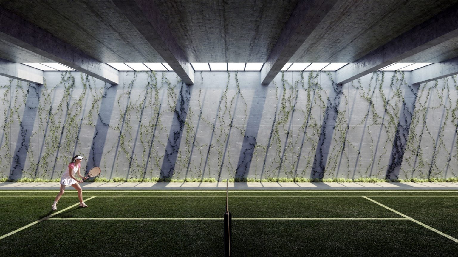 В цоколе здания находятся бассейн и теннисные корты, на первом этаже просторный холл и зал для мероприятий. Классные комнаты занимают пять этажей. Вход в классы расположен из атриумов, а вся фасадная часть находится в пышной зелени. Растения, высаженные на балконах, выполняют роль фильтров, очищая воздух. Также растения защитят классные комнаты от перегрева и будут служить буфером для шума.