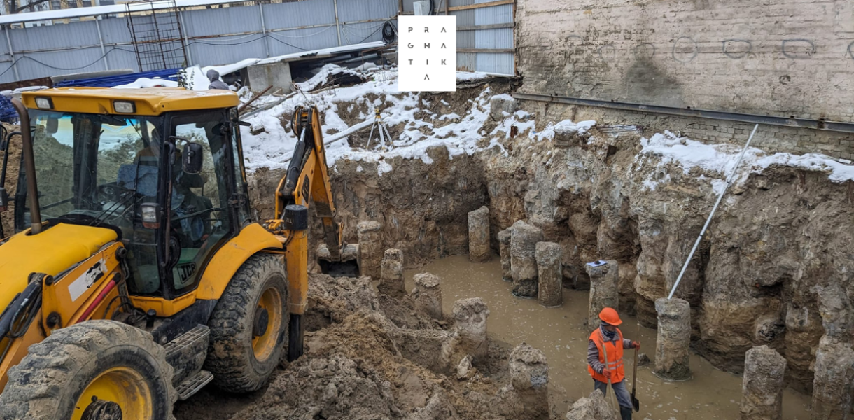 Біля памʼятки архітектури Будинку Марії Станіславської на вул. Володимирській, 95 будівельна техніка риє котлован.