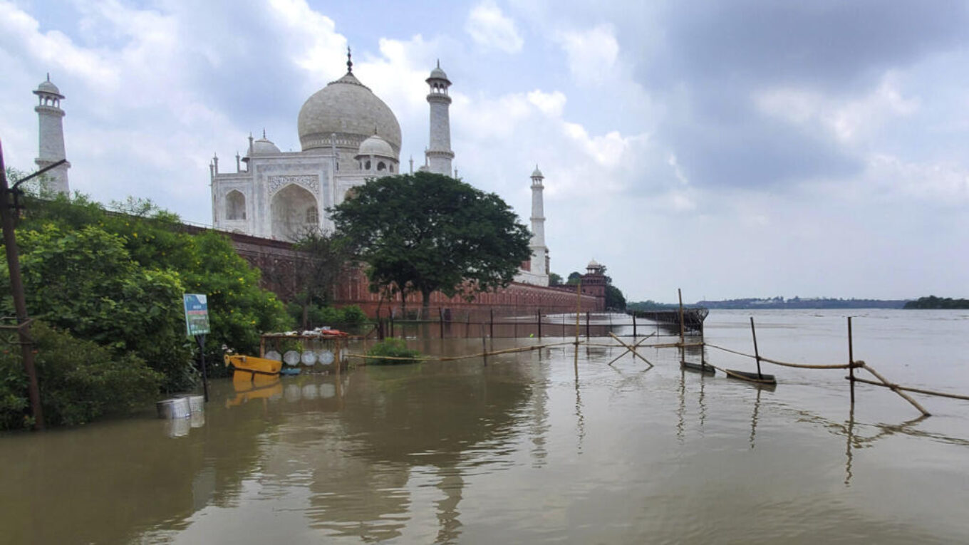 18 липня 2023 року річка Ямуна вийшла з берегів після сильних дощів та подальшої повені, вдаривши по монументу Тадж-Махал в Агрі. Фото: Aryan Kaushik / AP