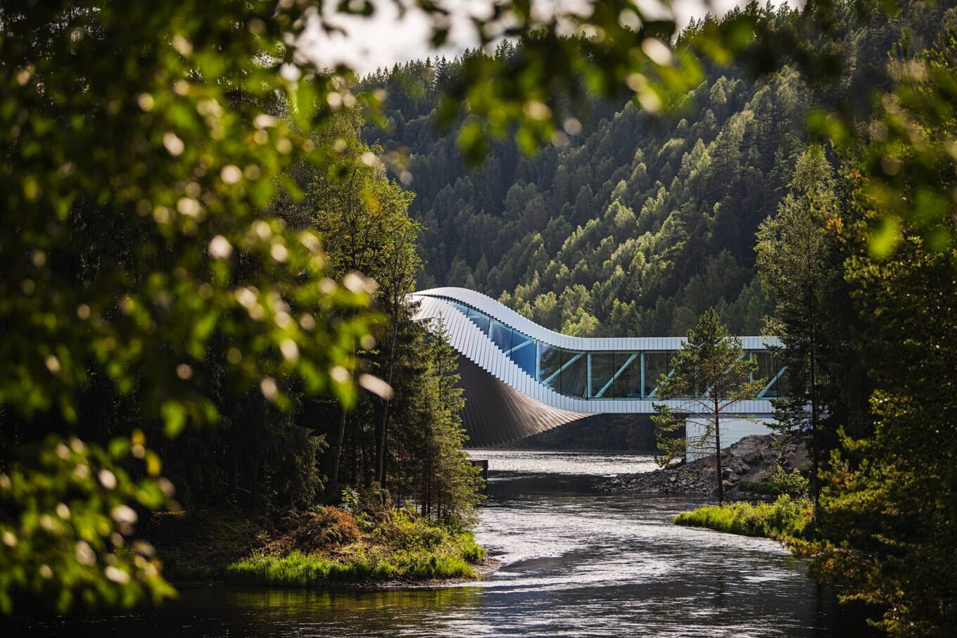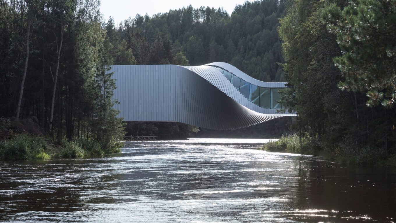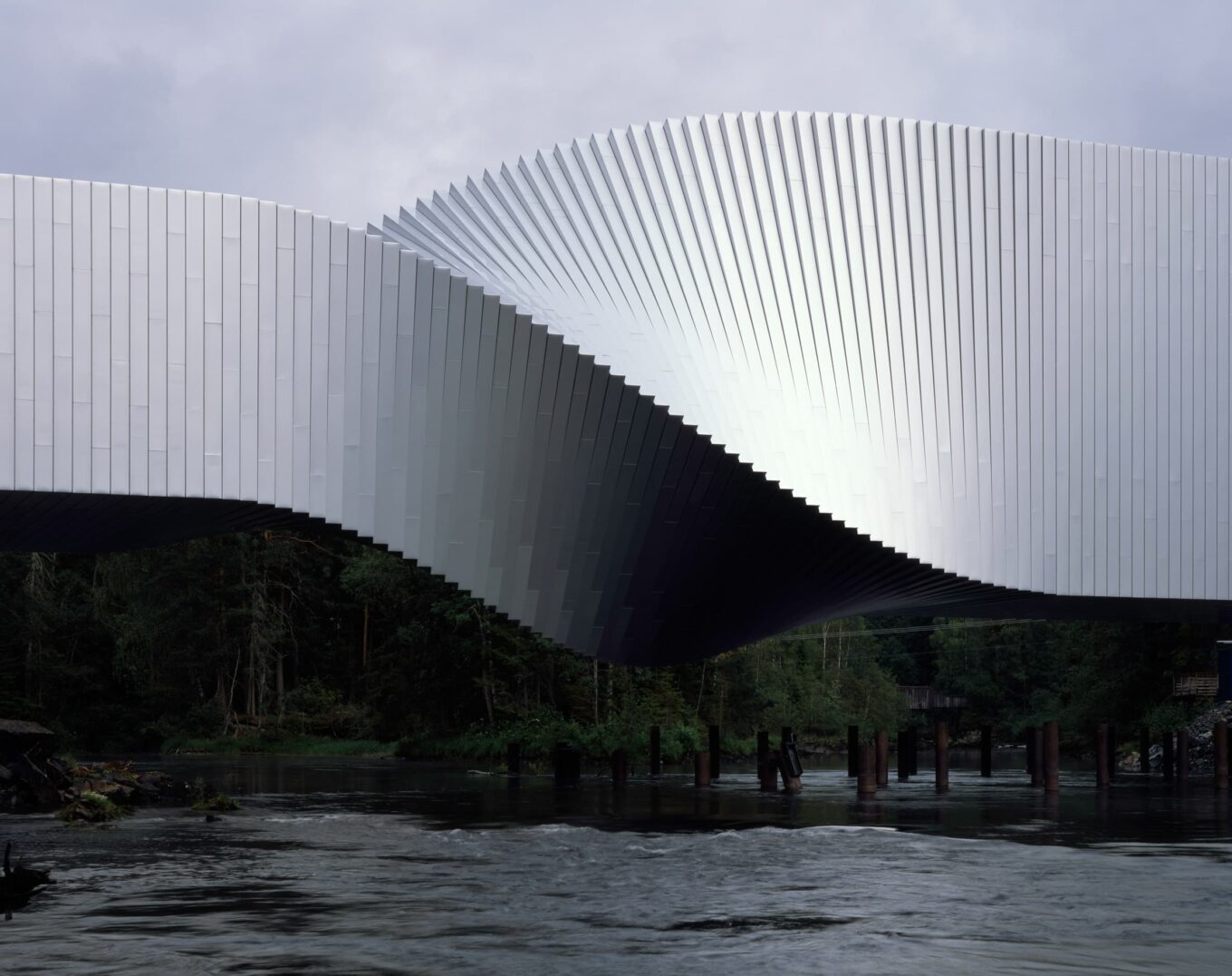 Новое творение Ингельса напоминает игральную колоду, тщательно выложенную картой к карте и сдвинутую особым образом. Здание, получившее название The Twist, – это гибрид инженерного сооружения, выставочного пространства и панорамной площадки. Фишка в том, что конструкция в форме параллелепипеда, перекинутая через реку, разделяющую норвежский скульптурный парк Кистефос, “перекручивается”, совершая оборот в 90 градусов, как конфетная обертка при разворачивании. Такой прием позволяет эффектно соединить северную и южную часть парка.