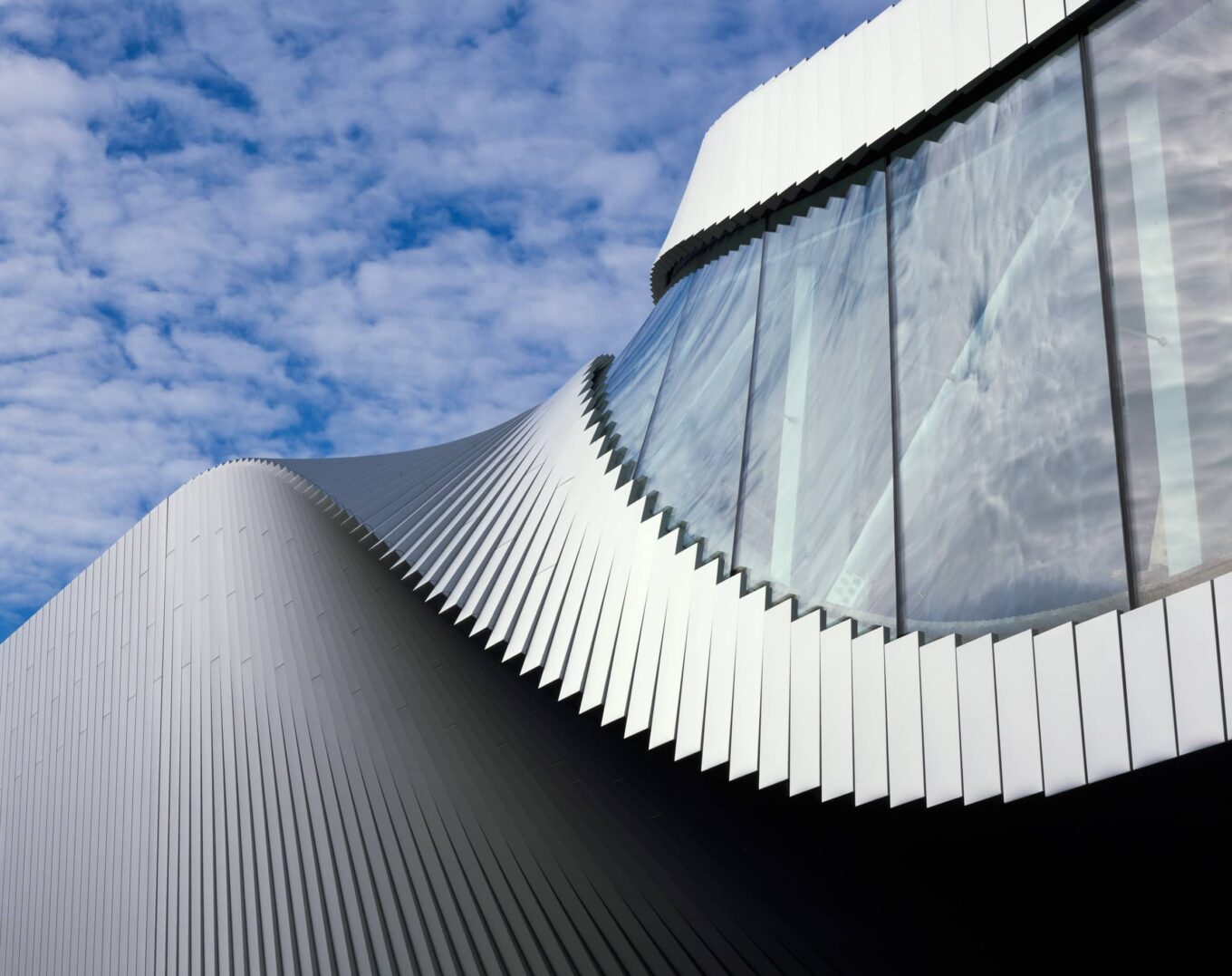 «Куда бы вы ни взглянули, — говорит Ингельс, — вы видите арки и дуги, спирали Фибоначчи и седловидные формы, но, всмотревшись, вы понимаете, что все это сделано из прямых линий — прямых листов алюминия, прямых деревянных досок».