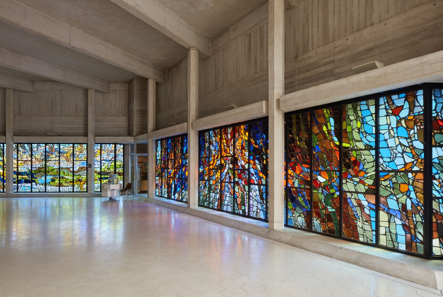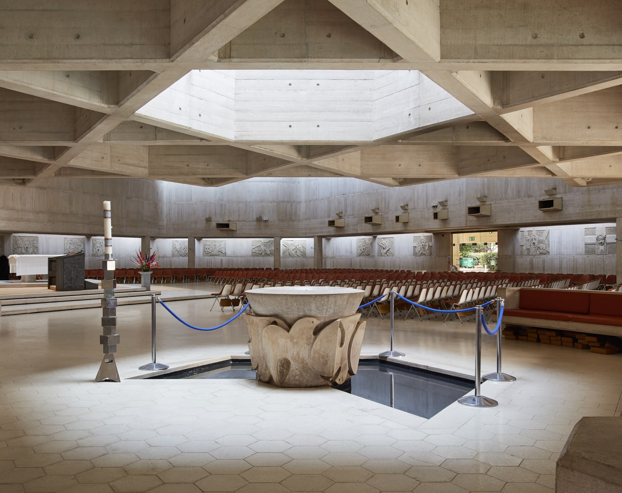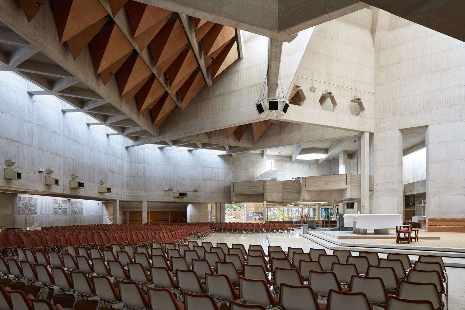 Но необычный, строгий дизайн кафедрального собора с вытянутым гексагональным планом, грубыми стенами и яркими модернистскими витражами оказался настолько привлекательным для прихожан, что по требованию общины его не закрывали даже во время ремонтных работ – здесь проводили мессы, крещения, свадьбы и похороны.