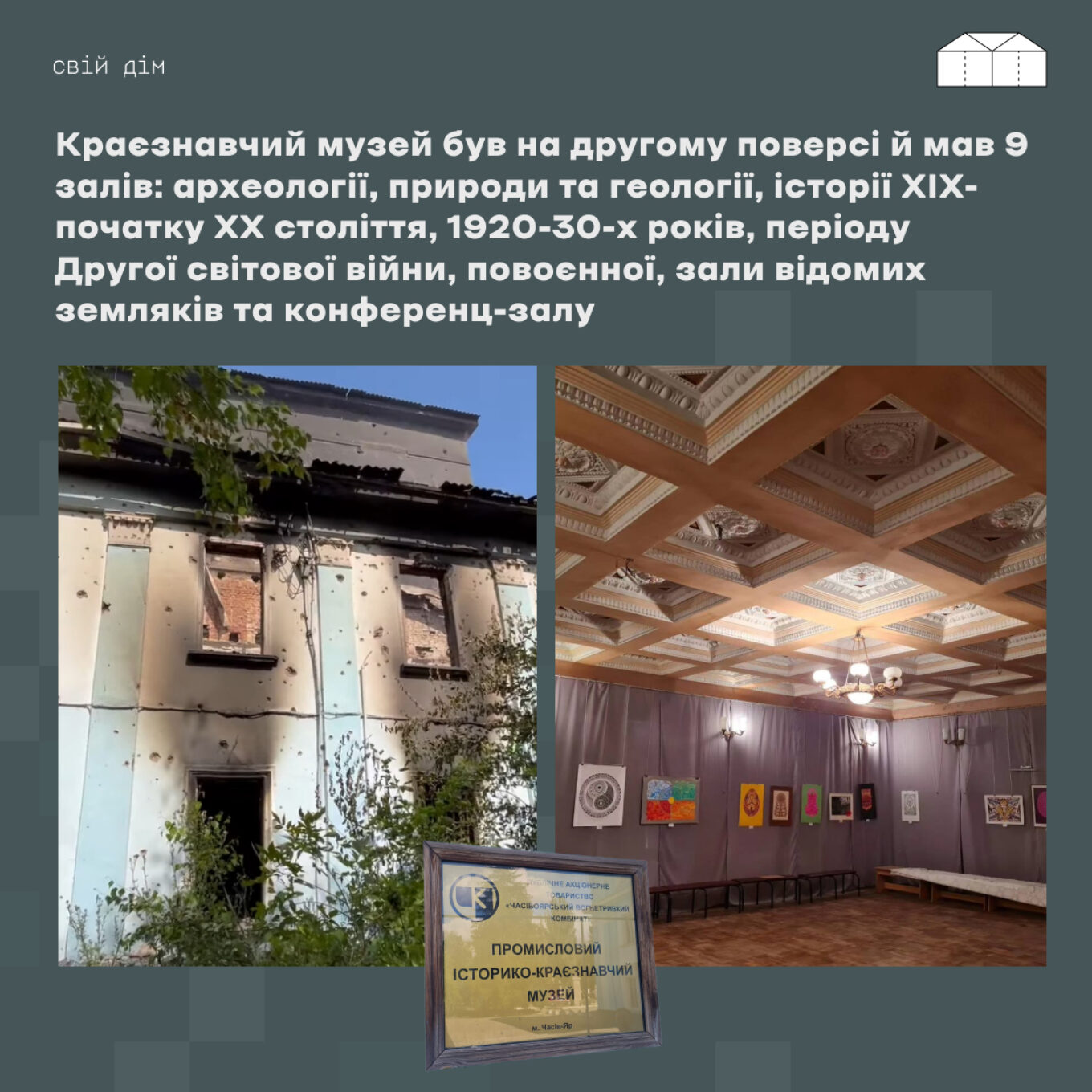 “Палац культури стоїть у самому центрі міста. Першою постраждала школа мистецтв, в якій працювали бібліотека та ЦНАП. Навпроти через дорогу – 15 школа, пів закладу нема. Постраждав стадіон, магазини навколо, контора вогнетривкого комбінату. Я ще казала: “Господи, лягає все навколо палацу”. Розуміла, що може бути прильот і в наш заклад, але не думала про такі масштаби руйнувань”, – розповіла журналісту “Свій дім” Катерина Бубнова, директорка КЗ “Будинок культури Часовоярської міської територіальної громади”.