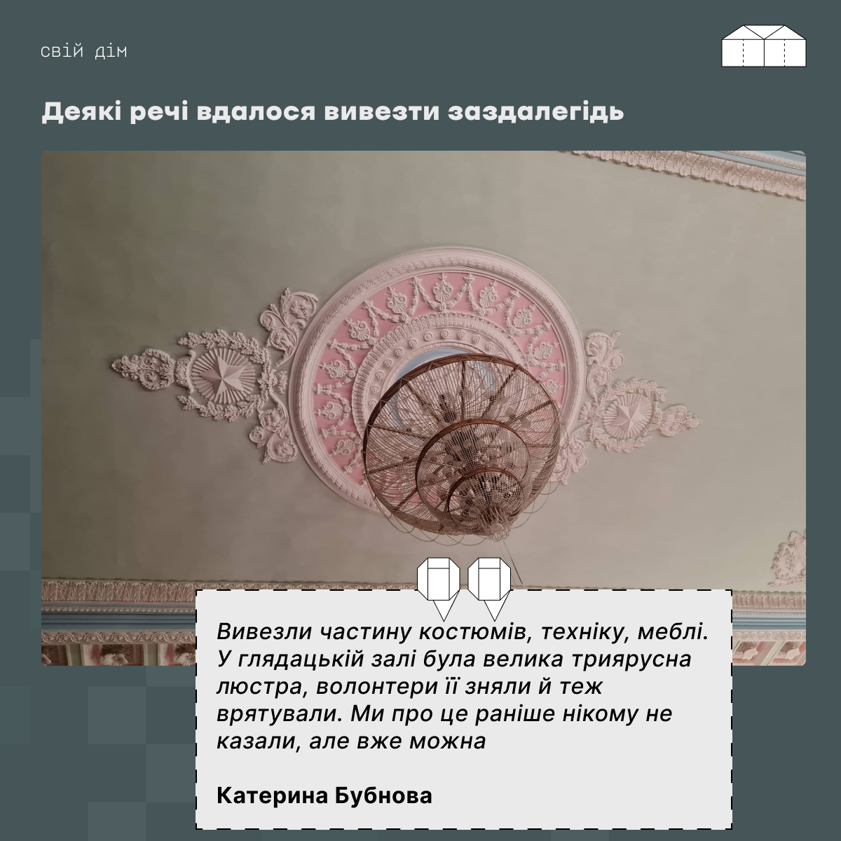 “Ще до обстрілу та пожежі ми евакуювали частину костюмів, техніку, деякі меблі. Багато чого залишилося і згоріло. По відео я навіть не впізнала свій кабінет на першому поверсі”, – говорить директорка.