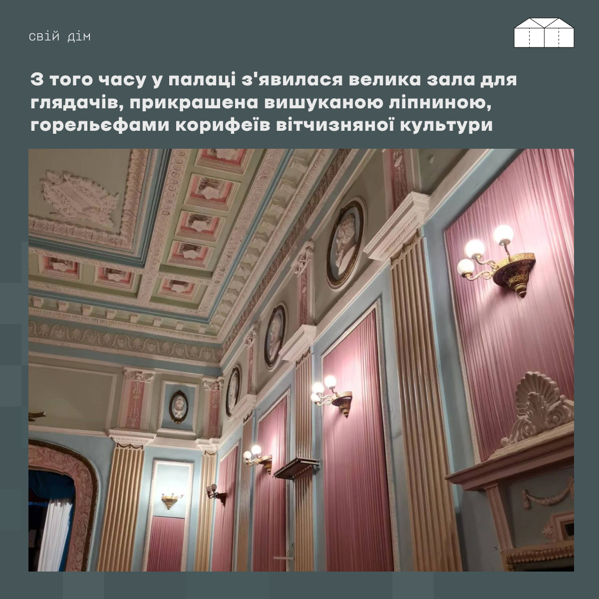 З тієї пори Палац культури мав чудову залу для глядачів на 750 місць, прикрашену вишуканою ліпниною, горельєфами корифеїв вітчизняної культури; просторі холи, зручні приміщення для занять колективів художньої самодіяльності, лекційний і спортивний зали. Загальна площа Палацу Культури становила 4500 кв. м.