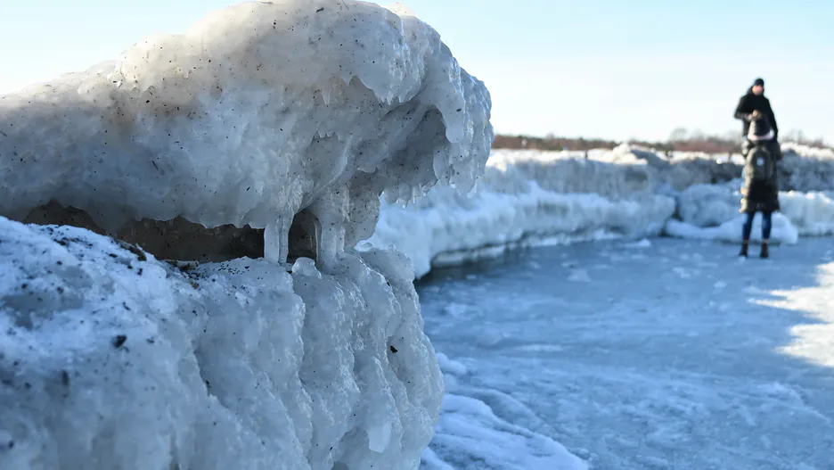 Світлини й відео із замерзлої Балтики швидко розлетілися соцмережами: замість звичного піщаного узбережжя туристи бачать суцільне крижане поле, яке місцями тягнеться на десятки метрів від берега.