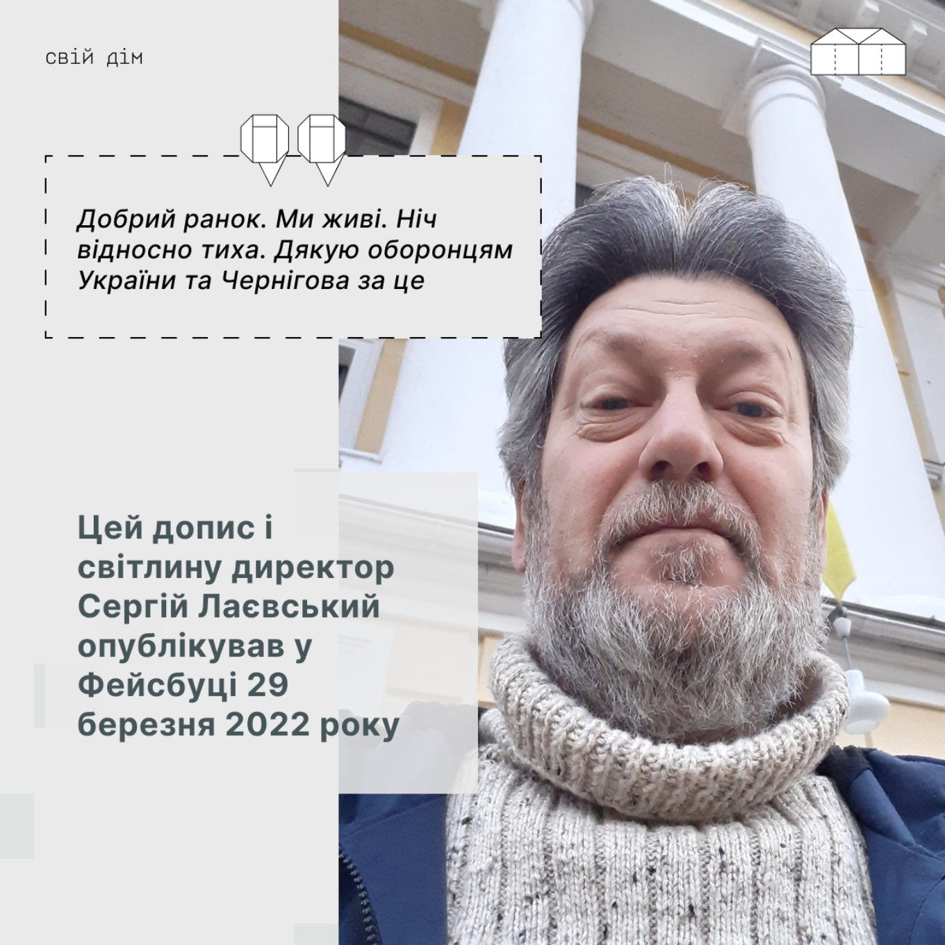24 лютого 2022 року у Чернігівському обласному історичному музеї імені Василя Тарновського мала відбутись зустріч, присвячена спротиву кримських татар, а наступного дня – відкритись виставка різьбяра Камишнікова. Але зранку пролунали вибухи. Замість запланованих заходів директор Сергій Лаєвський разом із колегами рятували колекцію від війни.