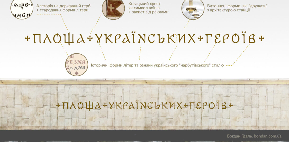 Для станцій метро “Звіринецька” та “Площа Українських Героїв” обрали шрифти українського графічного та шрифтового дизайнера Богдана Гдаля.