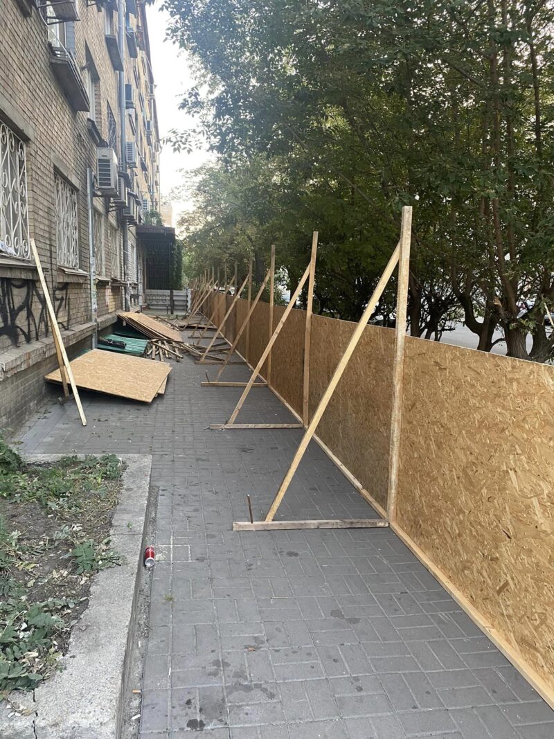 За її словами, 24 вересня будинок обнесли будівельним парканом, який майже повністю перекриває тротуар. Вона додала, що жодної попередньої інформації чи дозволів на будівельні роботи не було. Через кілька днів представники забудовника заявили, що всі документи у них є, але показувати їх не збираються.
