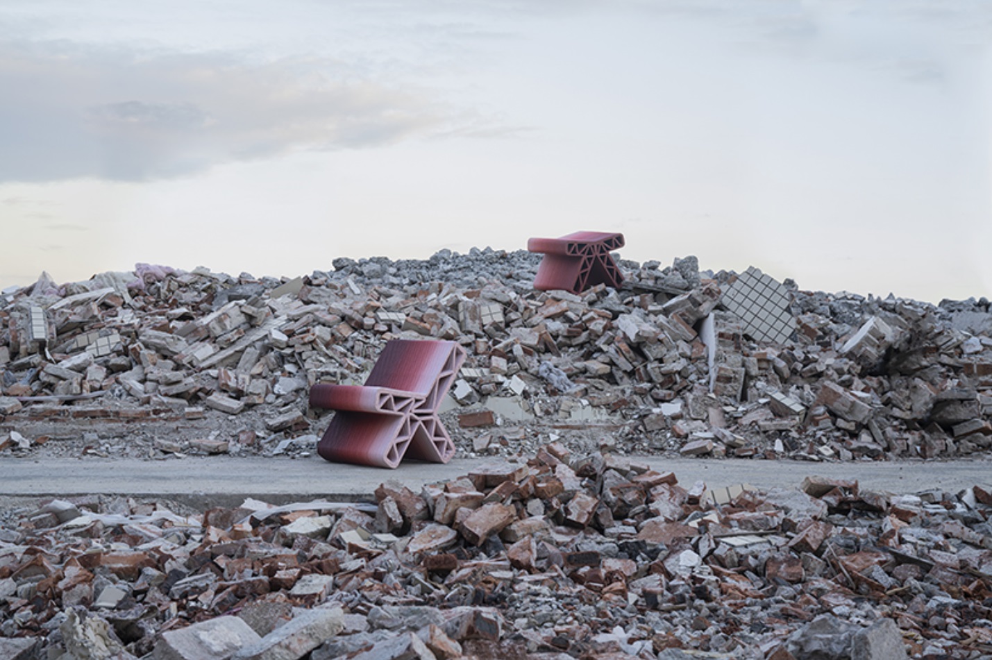 Вигляд меблів також пов’язаний із матеріалами демонтованих будівель. Дизайнери проаналізували фотографії таких місць і використали характерні кольори: червоні відтінки цегли, сірий колір бетону та синьо-зелені тони керамічної плитки.