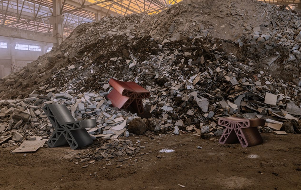 Новий композит містить до 85% перероблених будівельних відходів. Проєкт поєднує повторне використання матеріалів, локальну переробку та цифрове виробництво, що дозволяє створити замкнений цикл, оскільки сміття не вивозять з міста, а перетворюють на нові об’єкти в тому самому середовищі.