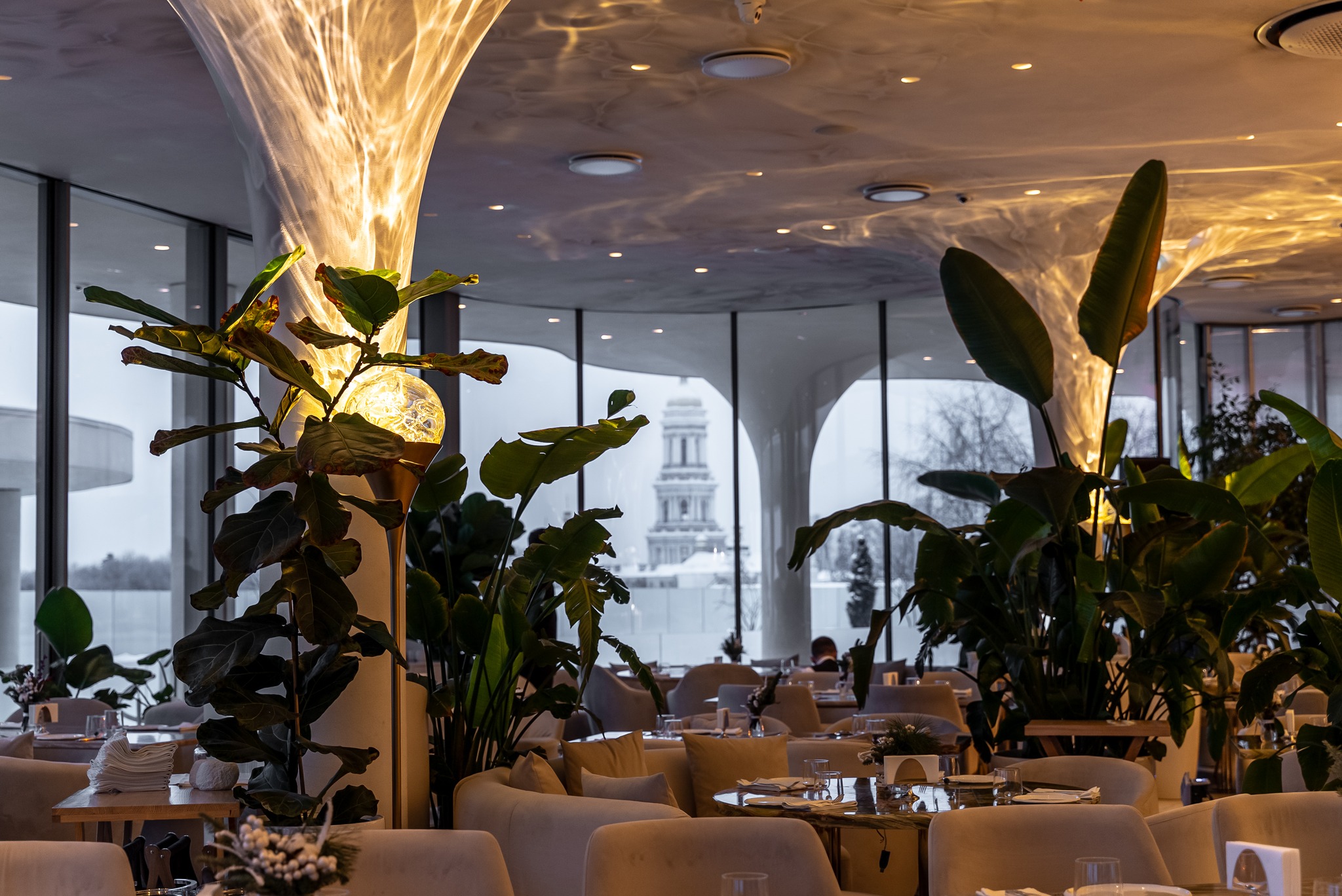 У ресторані також впровадили багаторівневу систему освітлення з біодинамічними сценаріями, які змінюють атмосферу простору протягом дня та підлаштовуються під різний час і формат перебування гостей.