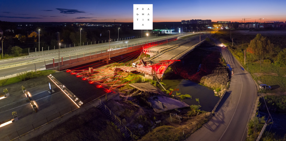 Expolight створили меморіальну інсталяцію “Дорога життя” на місці зруйнованого мосту в Ірпені