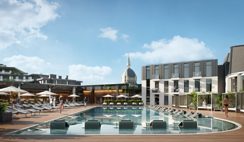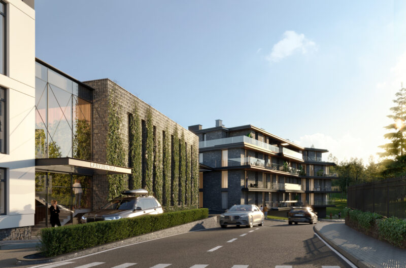 Багатофункціональний комплекс (mixed-use), гібрид готелю та житла в історичному ареалі Львова. Тут продумана логістика сервісу поєднується з каскадною забудовою, що делікатно вписується в ландшафт і зберігає панорами старого міста.