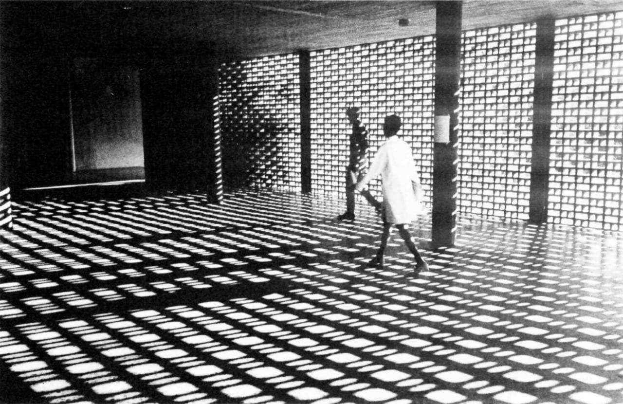 Обладатели «Золотого льва» XV Венецианской архитектурной биеннале 2016 года — известный дуэт парагвайских архитекторов Солано Бенитез и Глория Кабраль — разработали уникальную и яркую сценографию для выставки. Они использовали идеально сбалансированную модульную систему из старых оббитых кирпичей и бетона, выложив свое монументальное творение повторяющимися «треугольниками». Ритмическая конструкция, протянувшаяся вдоль всего фасада Фонда современного искусства Cartier, по замыслу авторов, должна вступать в эстетическую игру с проникающим в пространство галереи естественным светом.