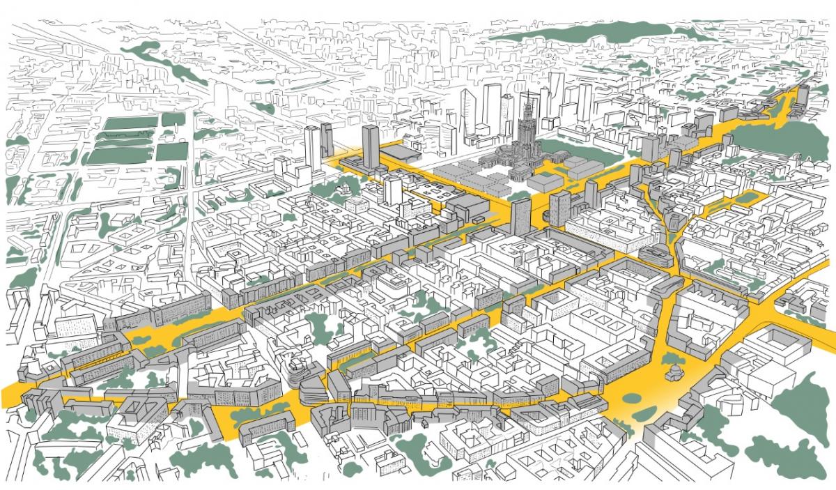 Її докорінна реорганізація відбуватиметься в межах проєкту створення Нового центру Варшави, завдяки якому центр польської столиці має перетворитись на безпечний, комфортний і доступний зелений простір, пише White Mad.
