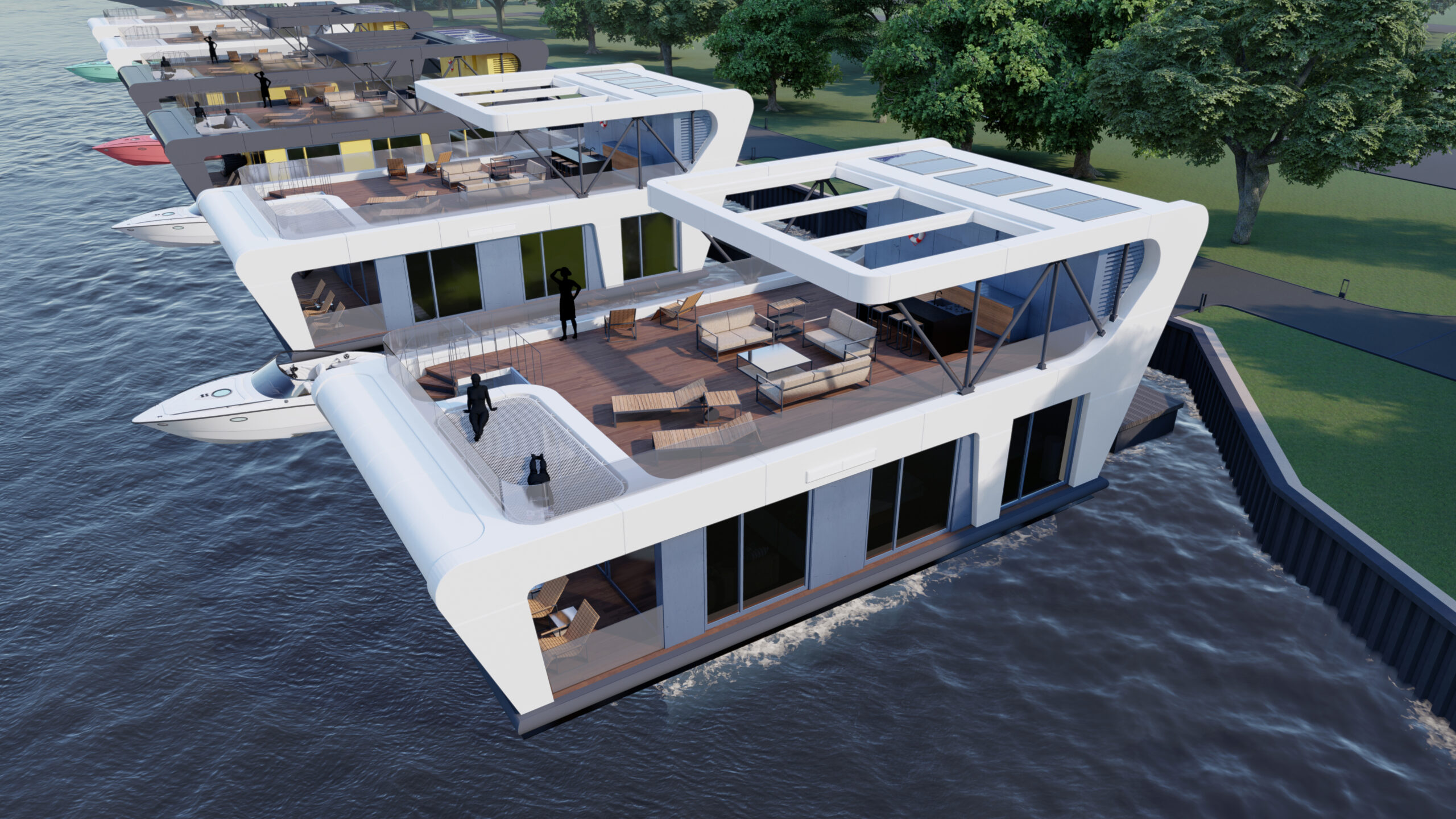 Головне, що загальна архітектура гармонійно взаємодіє зі специфікою конструкції HOUSEBOAT і підпорядкована основним принципам: міцність, естетика, функціональність, де міцність є пріоритетною.
