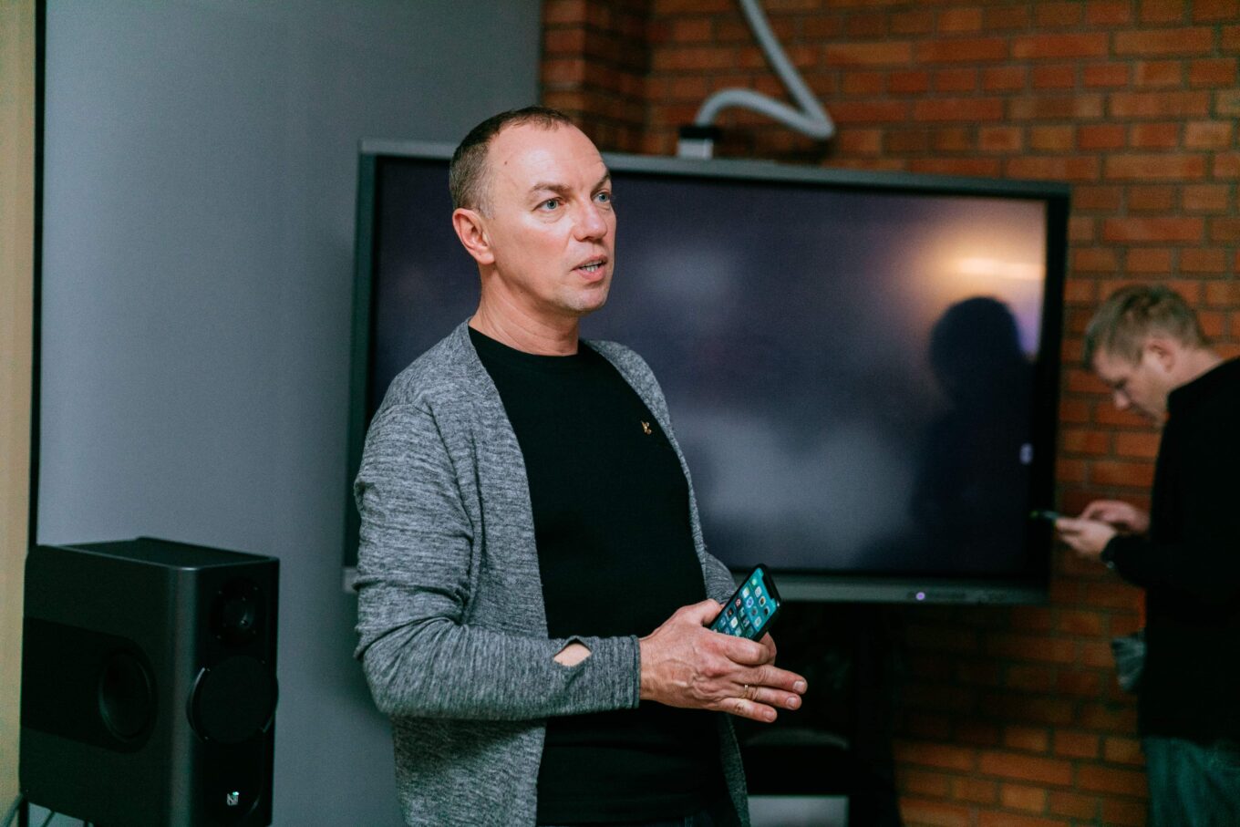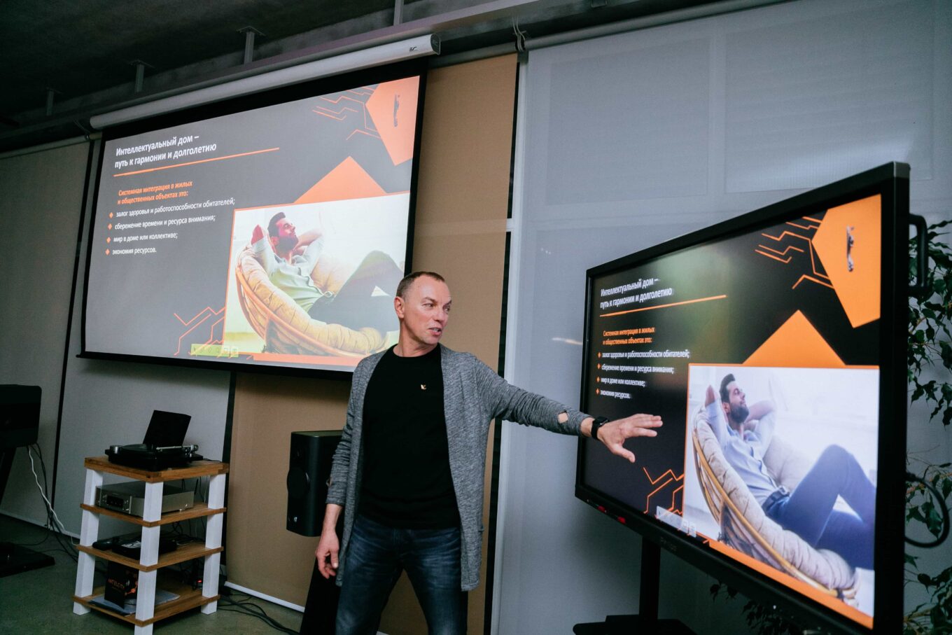 Презентация интеллектуального дома от “Интелсити”. На переднем плане руководитель “JUNG Украина” Ритис Мисявичюс