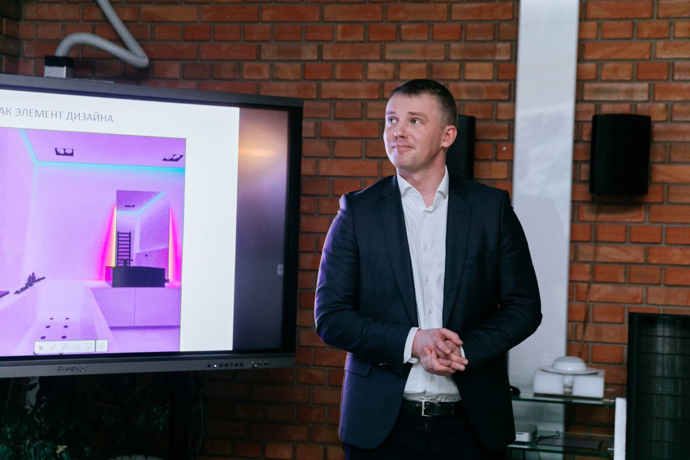 Кроме того, впервые в Украине гостям была продемонстрирована действующая система динамического освещения Human Centric Lighting, только-только прошедшая лабораторные испытания. Менеджер по продажам «JUNG Украина» Алексей Серов рассказал о стандартах диммирования освещения, световых сценах и вариантах эргономики управления освещением от JUNG.