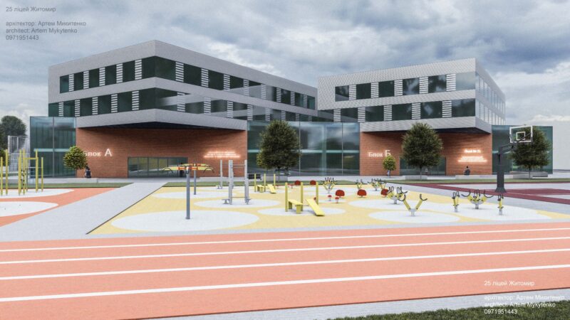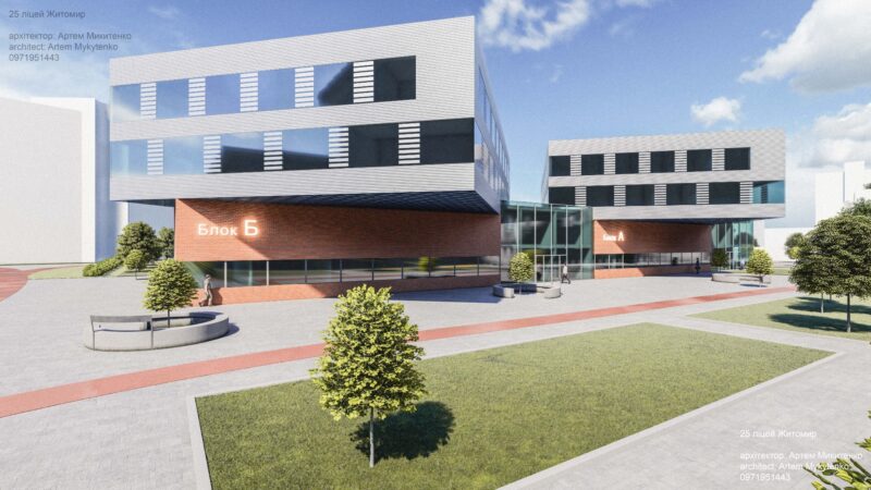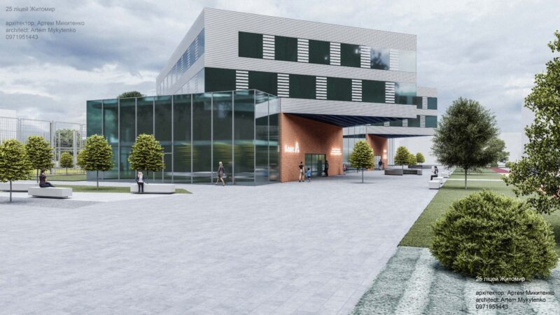 Разом із тим свою концепцію закладу пропонує житомирський архітектор Артем Микитенко. За його проєктом, фасад будівлі нагадуватиме два підручники з історії України, розташовані у відповідному положенні.