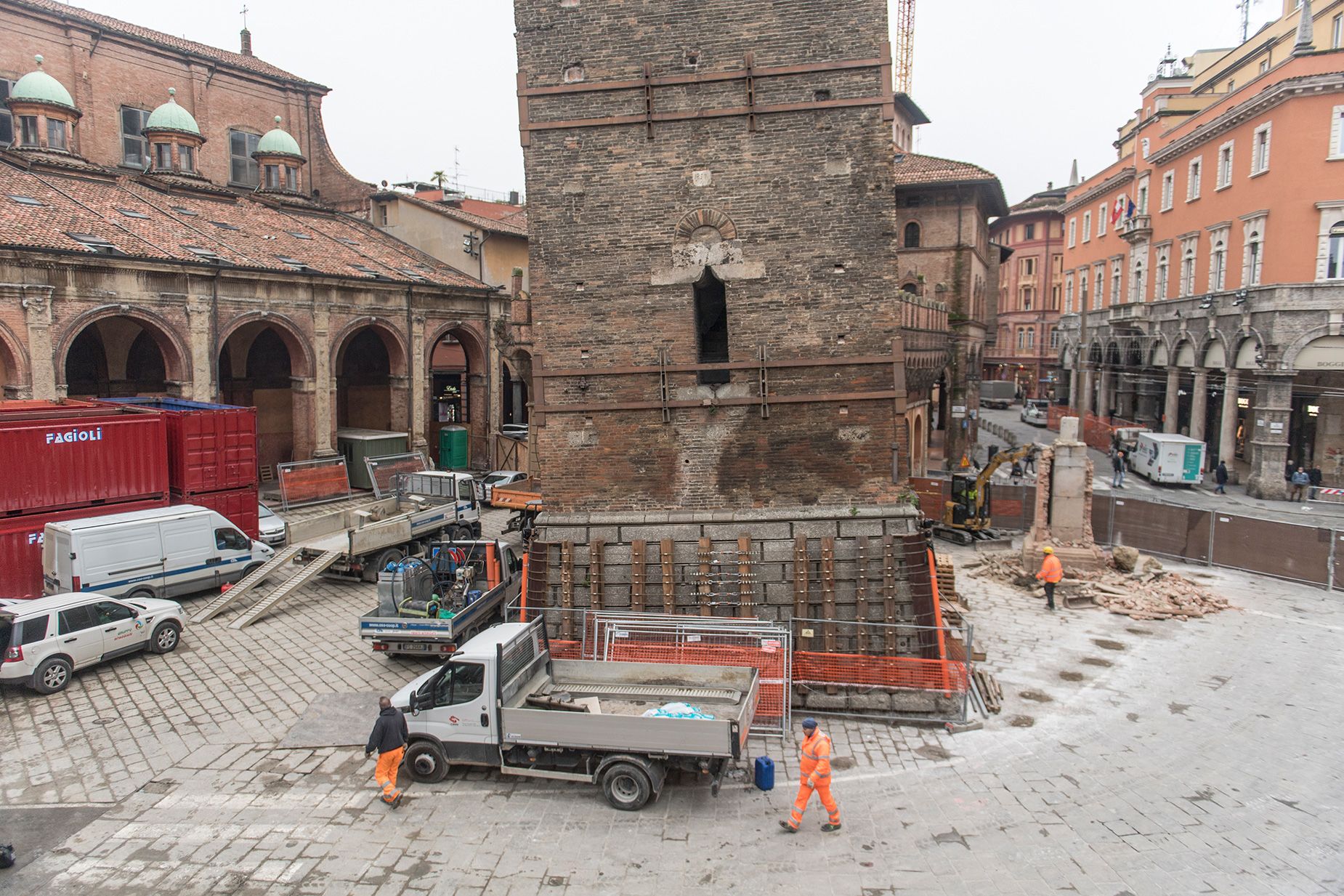 Мер Болоньї Маттео Лепоре каже, що опори та кабелі, які раніше використовувалися для збереження вежі в Пізі, будуть розгорнуті разом з адаптованими сталевими риштуваннями, щоб запобігти її розриву. Їх можна побачити на малюнку.