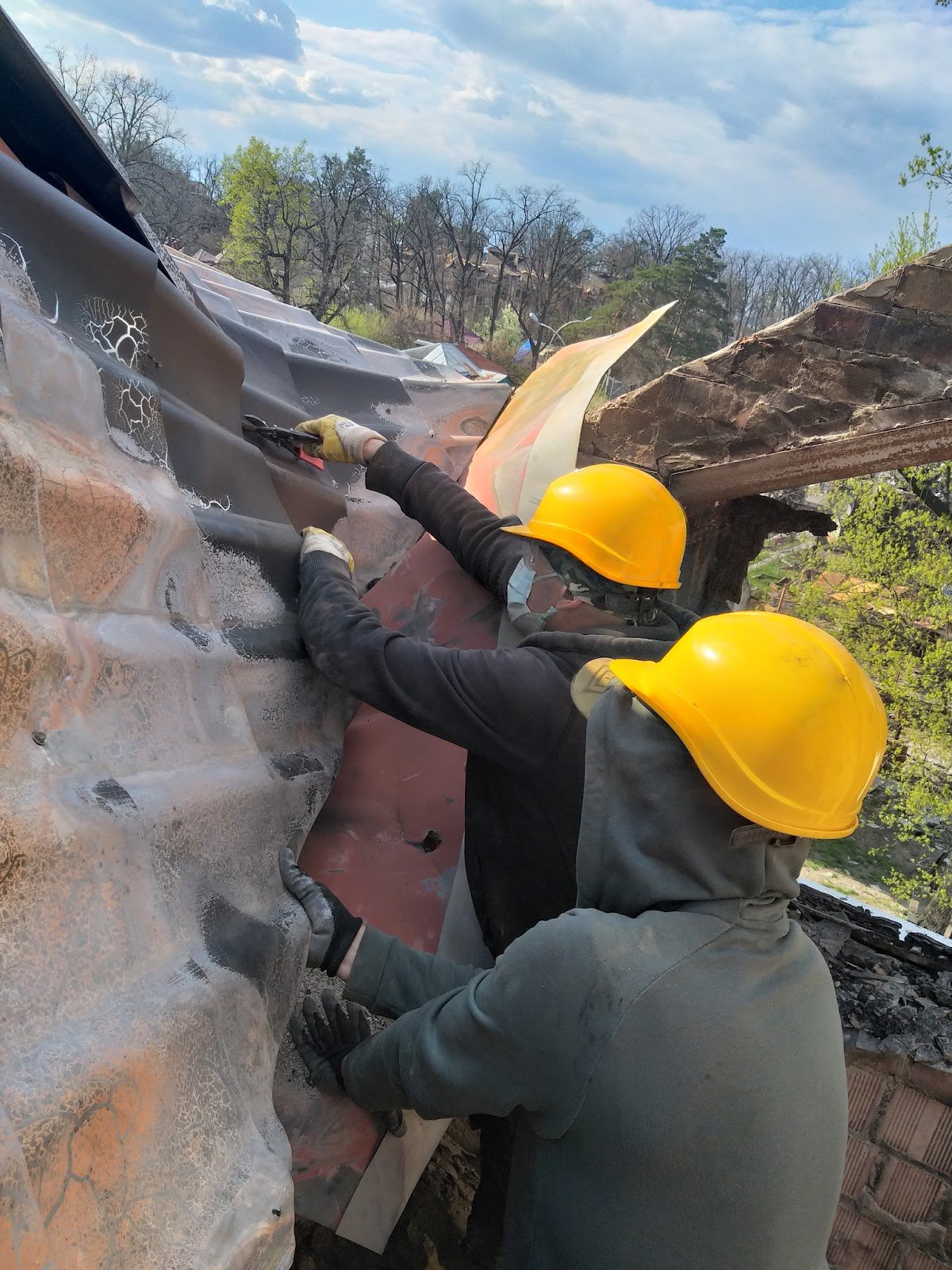 Мешканці будинку самостійно демонтували й вивезли дах, що перетворився на металобрухт після обстрілів. Фото: Facebook.com / SaveDobroradIrpin