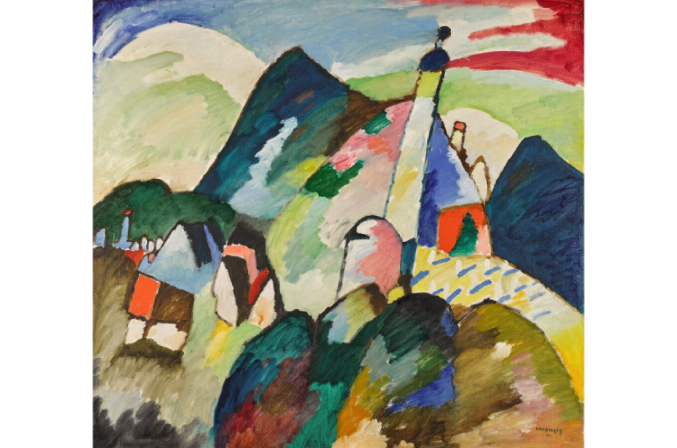 Робота Кандинського датована 1910 роком, він написав витвір у період переходу від фігуративності до абстракції. Картина увійшла до серії пейзажів німецького міста Мурнау, де художник жив на початку ХХ століття.