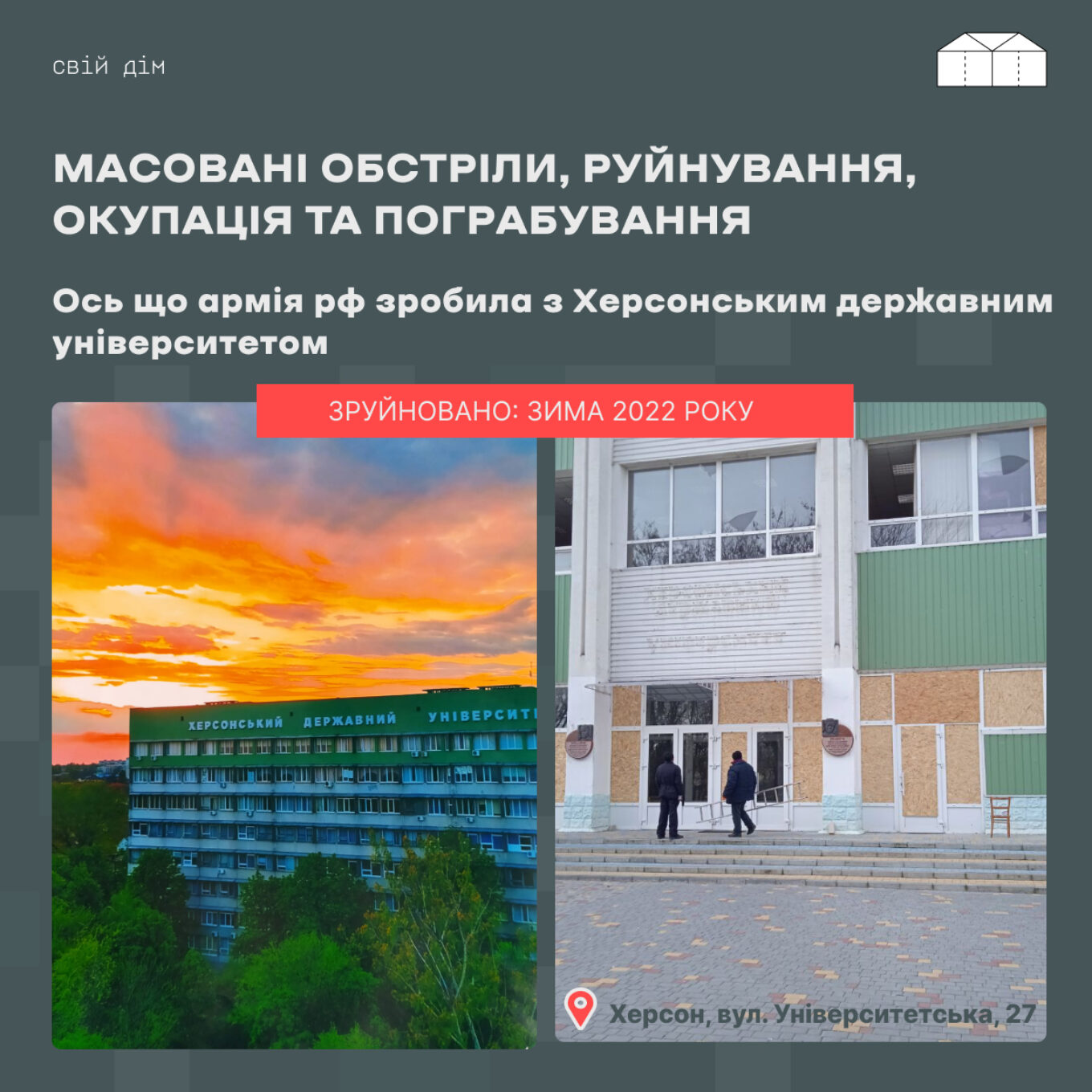На платформі “Свій дім” можна поділитися власними спогадами про зруйновану оселю або заклад, в якому працювали. Для цього є зручна анкета https://bit.ly/sviydim