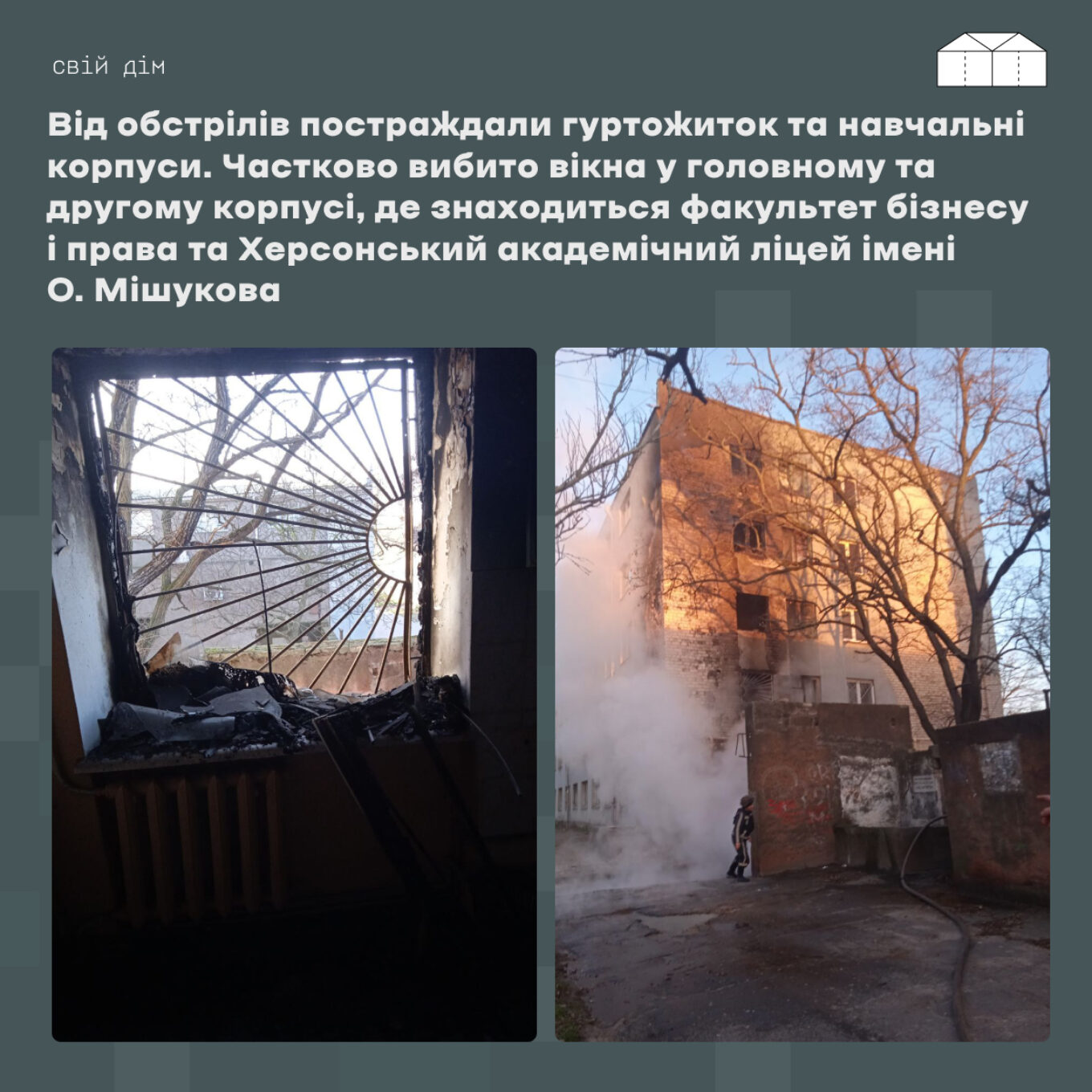 Співробітники університету за підтримки Херсонської обласної військової адміністрації закривали пошкоджені вікна, власними силами ліквідували наслідки обстрілів.