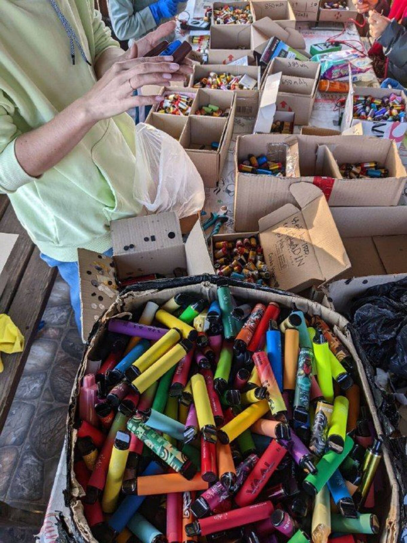 До ініціативи також долучились й місцеві мешканці – вони розбирають на запчастини використані цигарки й сортують акумулятори.