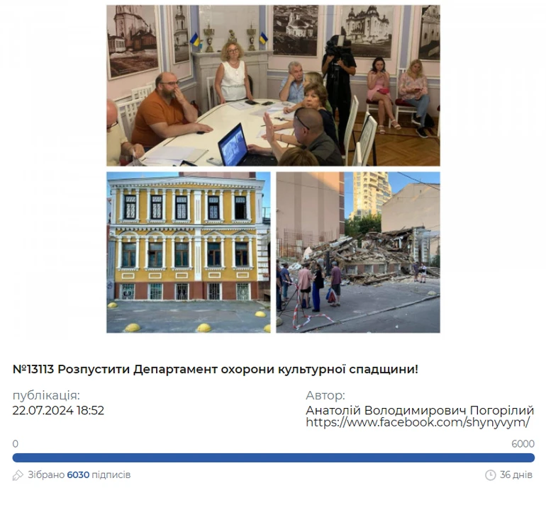 Петиція із закликом розпустити Департамент культурної спадщини КМДА набрала голоси