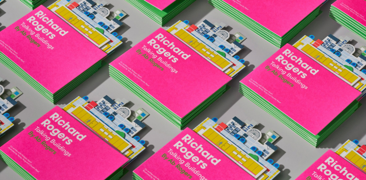 Дизайнер Аб Роджерс створив яскраву дитячу архітектурну книжку-розкладанку, присвячену творчості та ідеям його батька — видатного британського архітектора Річарда Роджерса. Видання під назвою Richard Rogers Talking Buildings вийшло у співпраці з видавництвом Owl & Dog Playbooks.