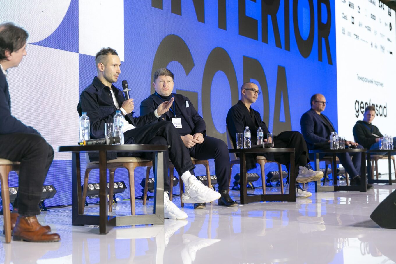 Дискуссионная панель во время Всеукраинского архитектурного конкурса «Интерьер года 2021». Среди участников дискуссии: Дмитрий Аранчий,архитектор, руководитель студии Dmytro Aranchii Architects; Валерий Кузнецов, дизайнер,основатель студии Decorkuznetsov; Хироки Мацуура,архитектор и сооснователь MADMA urbanism+landscape в Нидерландах; Кристос Пассас,директор архитектурного бюро Zaha Hadid Architects в Великобритании; Александр Симонов, архитектор бюро archimatika