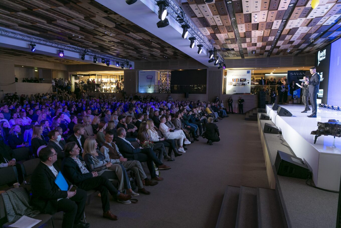 Кроме того, гости мероприятия могли ознакомиться с продукцией партнеров конкурса – на третьем этаже вокруг основной сцены разместились 60 стендов производителей мебели, света, аксессуаров, материалов, сантехники, техники и конструкций. Среди них: Marazzi, Freedom, MANEZH, AXOR.