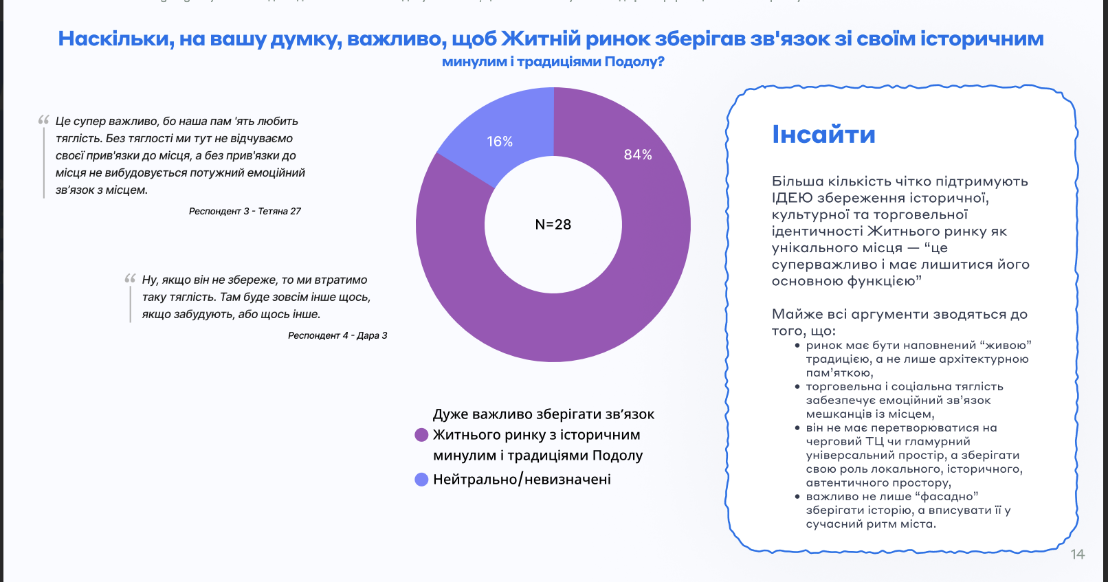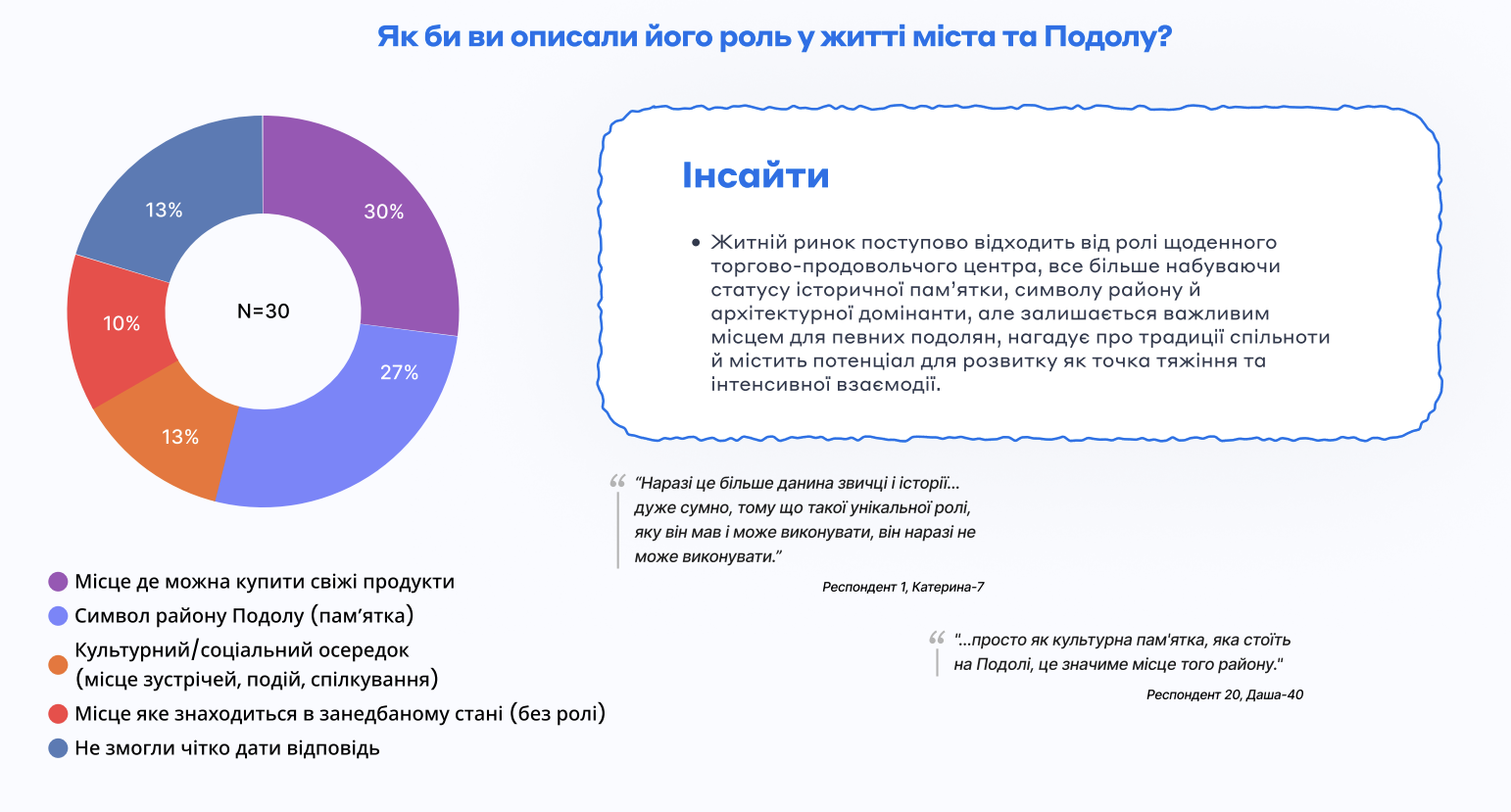 Результати показують, що громада підтримує оновлення Житнього, але лише за умови збереження його автентичної архітектури, функції ринку та соціальної ролі.