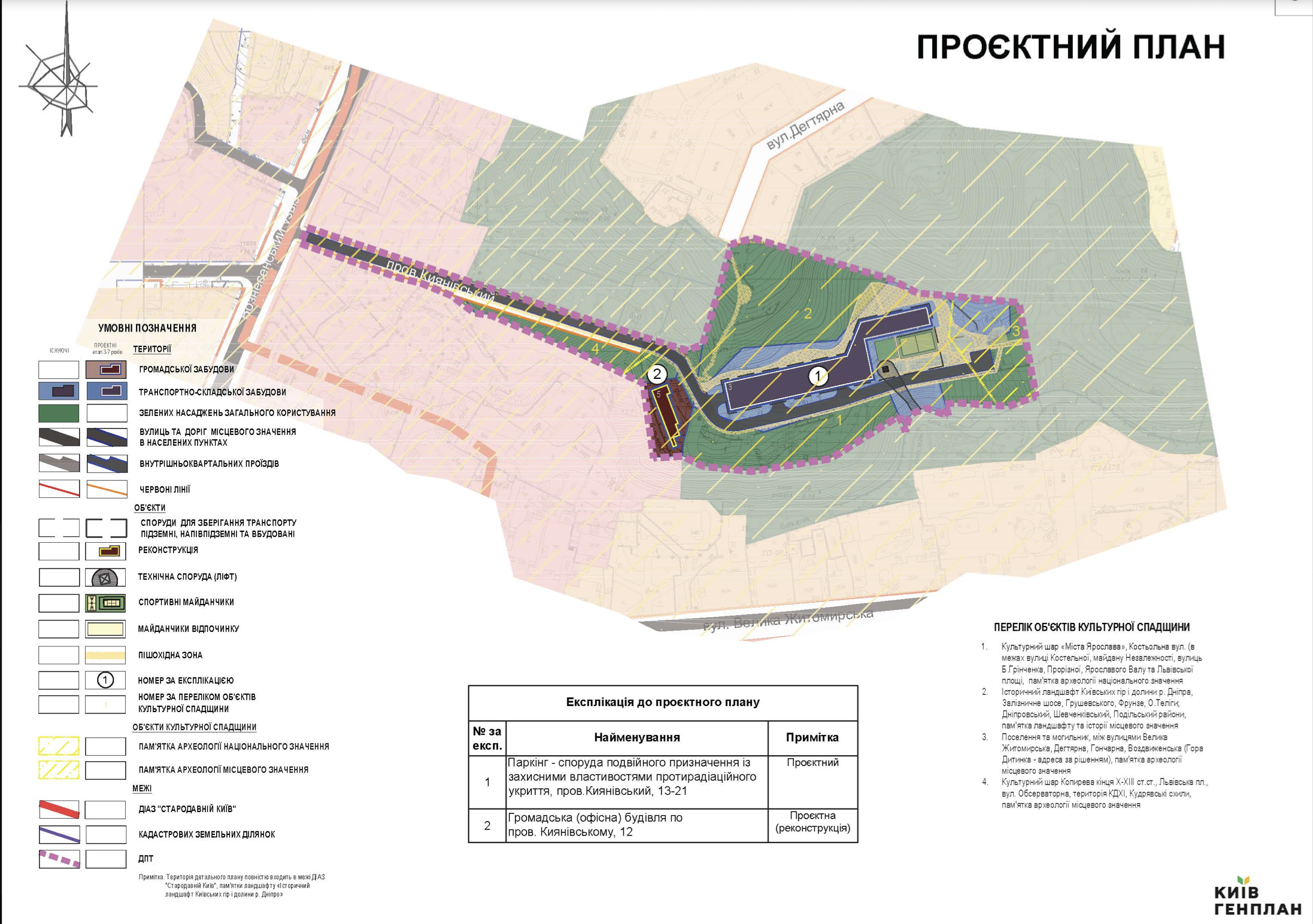 Згідно з детальним планом території (ДПТ), паркінг заплановано за адресою провулок Киянівський, 13-21. Проєкт також передбачає офісну будівлю та міст.