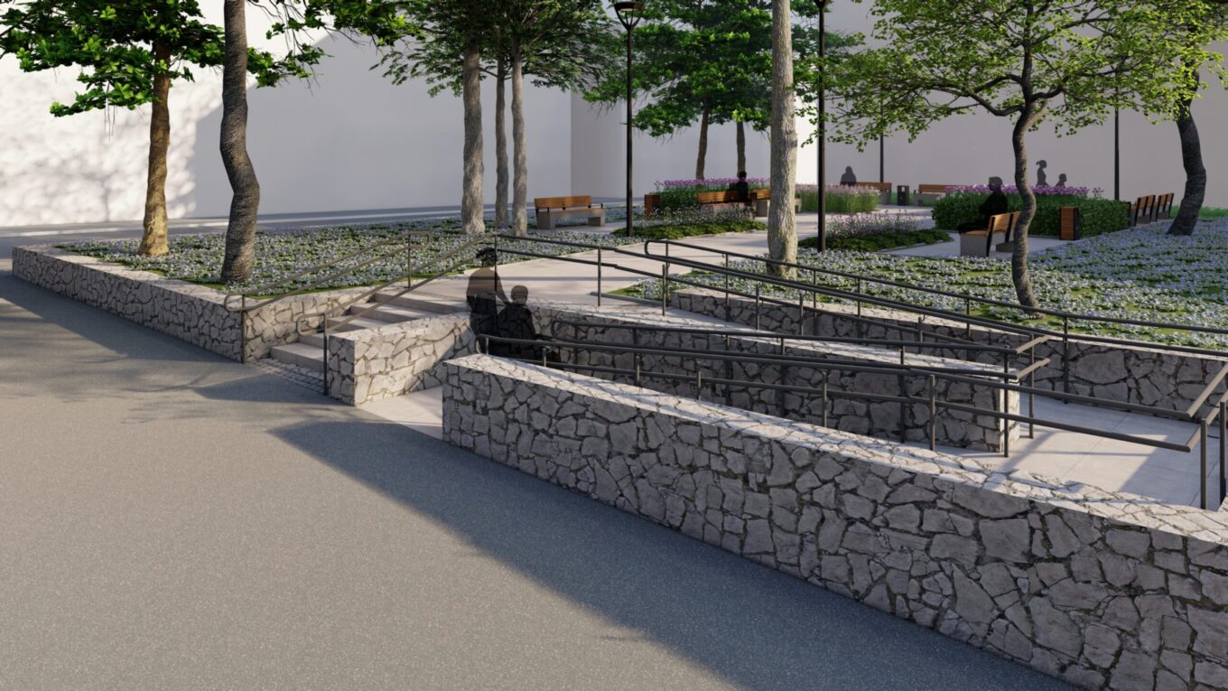 Сходи та супутні елементи проєктуватимуть із дотриманням вимог державних будівельних норм щодо інклюзивності, наприклад, передбачено влаштування тактильних смуг на прилеглих просторах. На всіх частинах пішохідного шляху, що перевищує ухил 5%, встановлять пандуси.