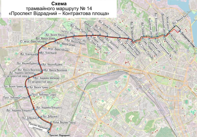 Водночас із 16 грудня припинить роботу тимчасовий автобусний маршрут № 14-Т «Проспект Відрадний – Контрактова площа», який було запроваджено на період проведення ремонтних робіт.