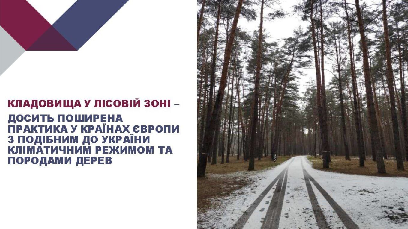 Кладовище буде розташовано посеред соснового лісу, що є великою перевагою, оскільки сосна має стрижневу кореневу систему глибиною залягання до 30-40 метрів. Це дає можливість максимального збереження та самовідновлення існуючих дерев у разі пошкодження коріння при проведенні поховань.
