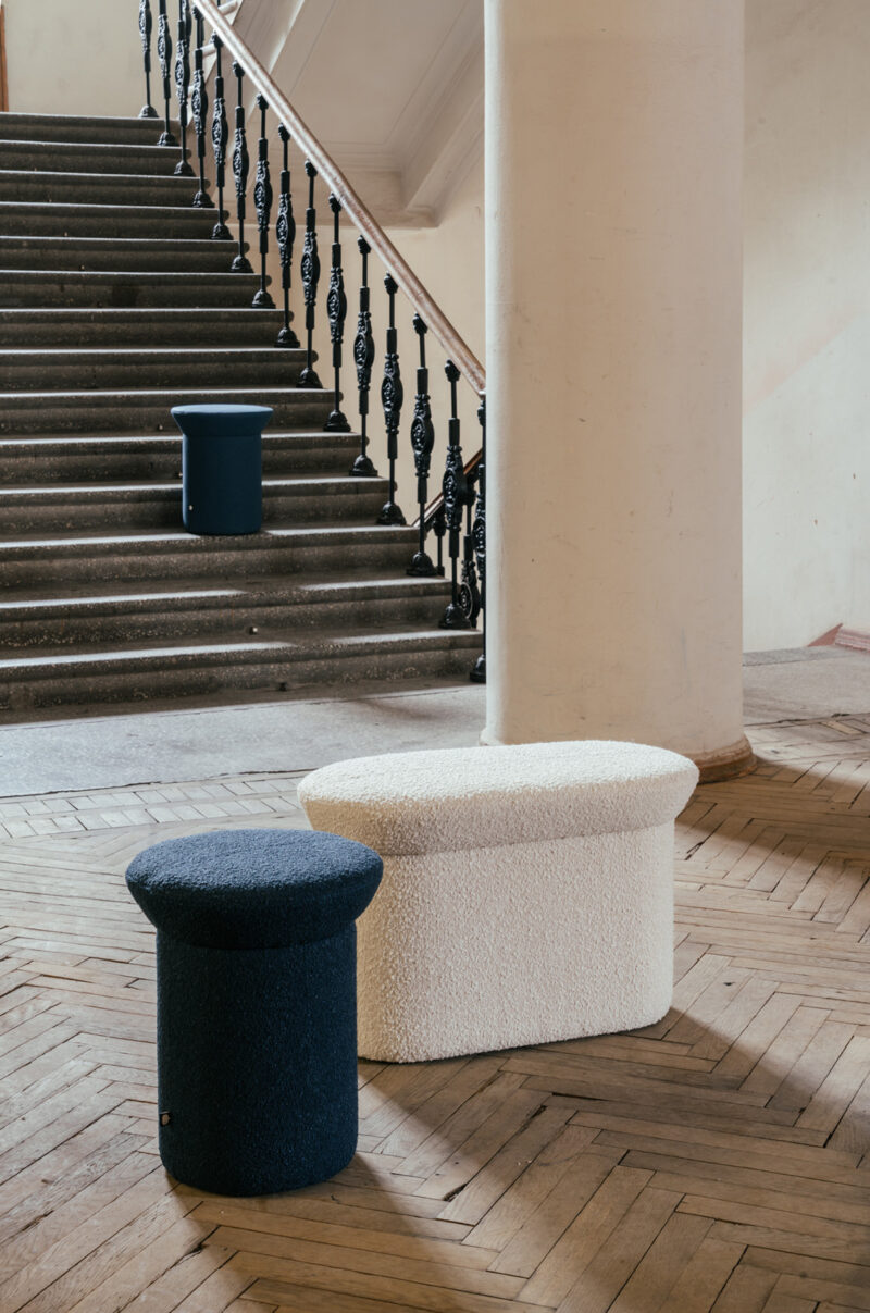 Серія пуфів схожих на індустріальні гвинти. Круглий або подовжений елемент декору чудово впишеться у спальню або вхідну групу.