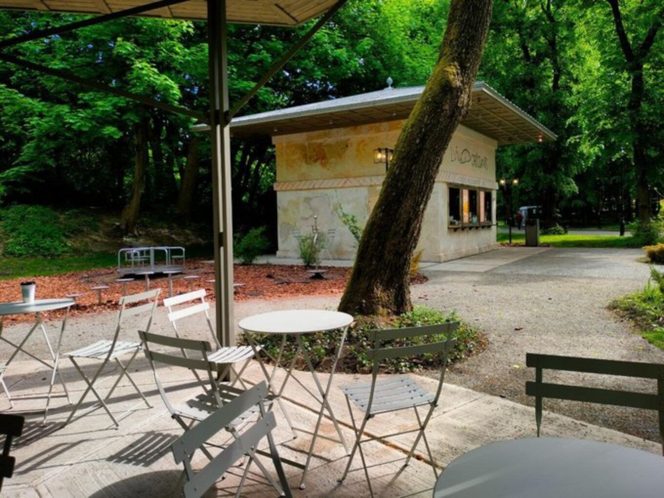 Роботи з відновлення провело бюро Replus Bureau. Як там зазначають, МАФ у Стрийському парку спорудили в 1928 році для продажу японських тютюнових виробів для виставки “Східні торги”. Щоб вписати будівлю в зелену гаму парку, поруч також спорудили ротонду в стилі павільйону.