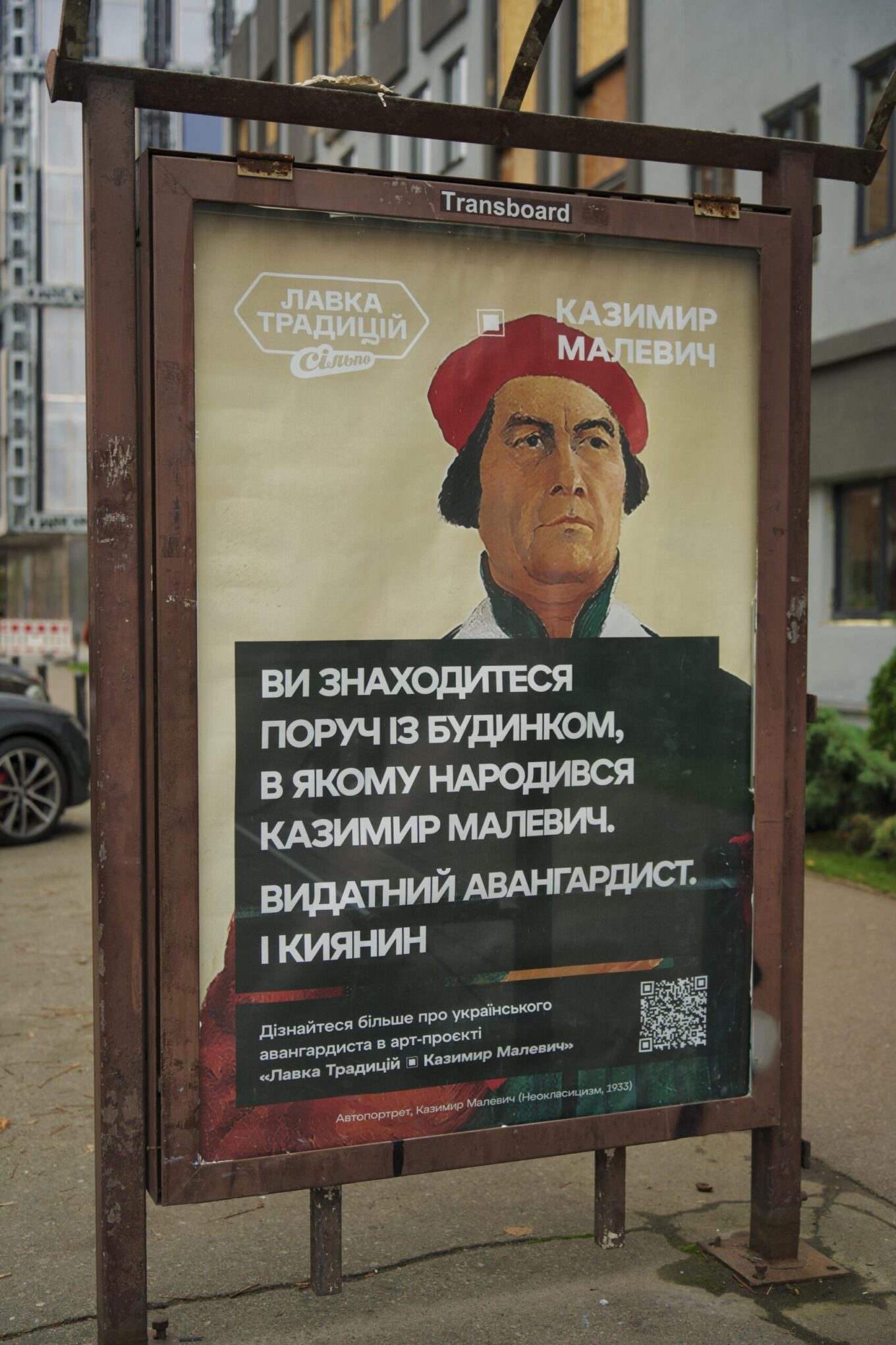 “Лавка Традицій” спільно з мистецтвознавцями дослідила київську біографію Малевича та розмістила інформаційні стенди поблизу повʼязаних із ним адрес.