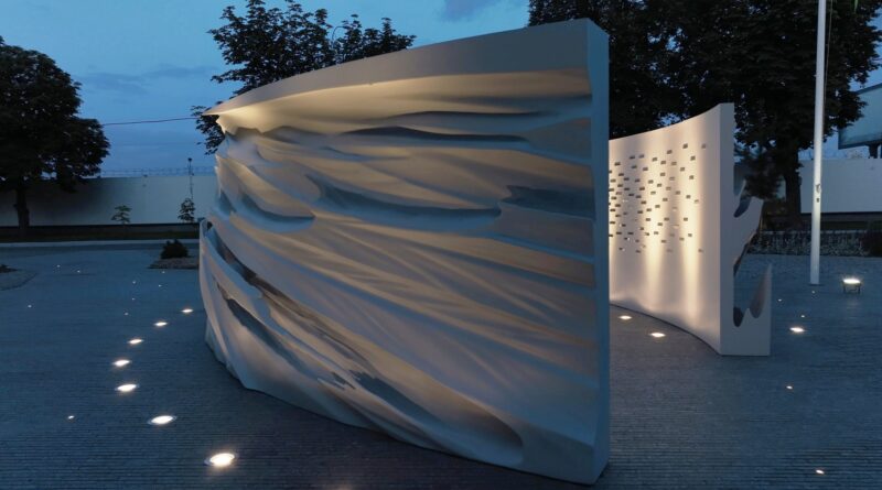 Місце памʼяті складається з двох видовжених стел, які здіймаються ніби крила, що застигли в русі. Їхня поверхня — це не просто рельєф, а історія боротьби, яка оживає в грі світла і тіні. Вона уособлює опір, силу та стійкість. Це відбиток важкої, але героїчної праці розвідників.