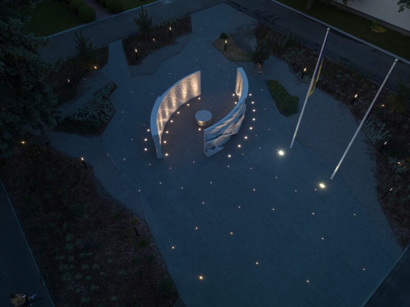 «Скульптура — це авторство Назара беззаперечне. А меморіал — це наша спільна робота, ми як архітектори доповнювали простір, його форму, разом знайшли ці об’єми. Освітлення, ландшафт — це все разом спільно пророблялося й погоджувалося. Ми дуже тісно працювали, обговорювали навіть ті речі, які від нас не залежали. Це була абсолютна синергія скульптури та архітектури», — зазначає Лесюк.