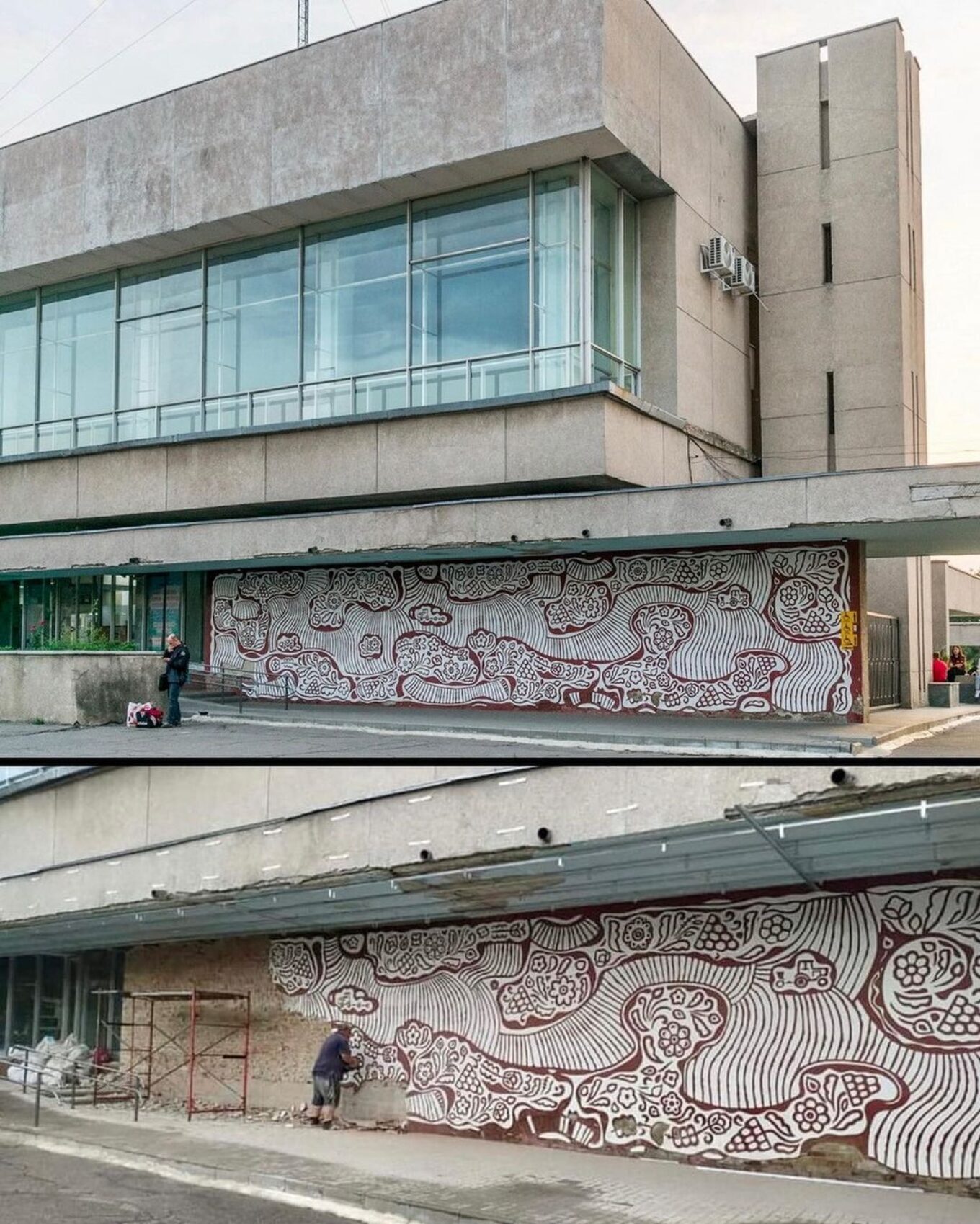 Представники спільноти Ukrainian Modernism пропонують подати позов до керівника “Полтаваавтотрансу” з вимогою відтворити два мистецькі творі за власний кошт, адже сграфіто не закрили, а просто збили зі стін.