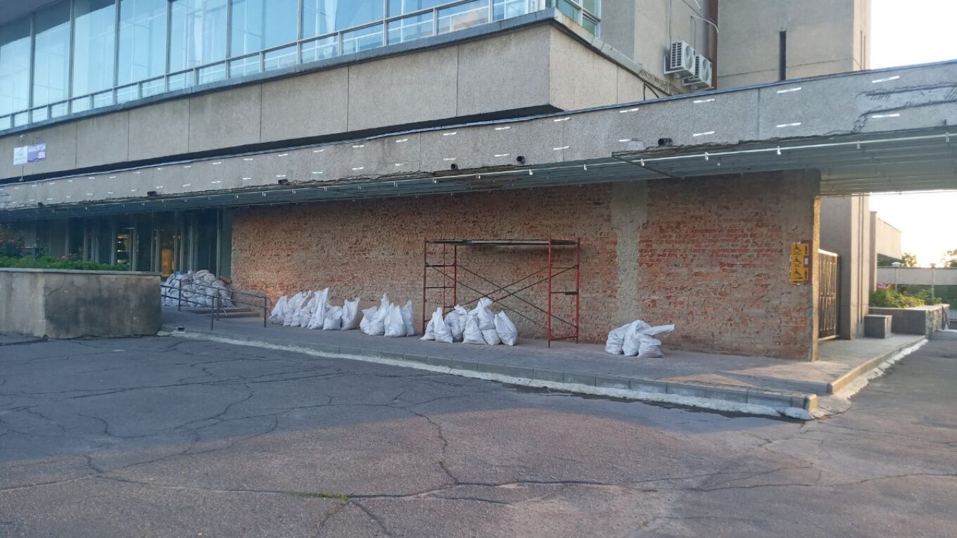 “По-перше, ми не порушили законодавства, тому що це панно не було в жодному переліку охоронних пам’яток. По-друге, ми вичерпали усі можливості якимось чином підтримувати його — шари штукатурки відвалювалися своєрідними “коржами”. Тому ми вирішили осучаснити вхідну групу — вона буде виготовлена з керамограніту, із вставками чорного кольору.