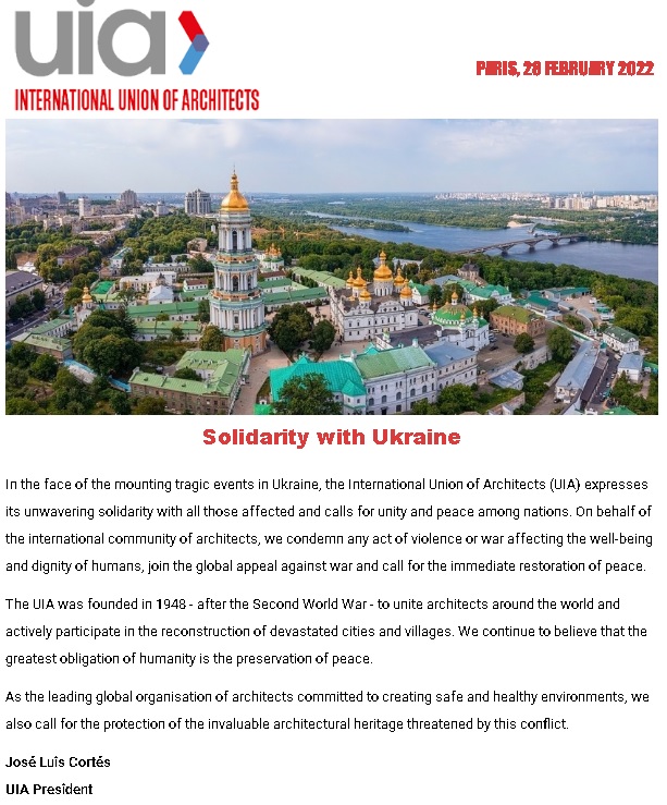 Міжнародна спілка архітекторів закликає “до єдності та миру між народами” та захисту неоціненної архітектурної спадщини, якій загрожує війна.