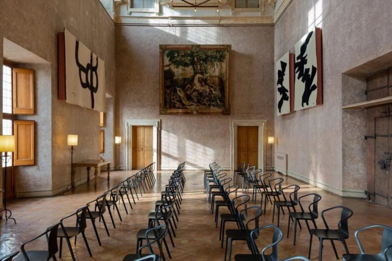 Великий салон містить ряди звивистих стільців Belleville, створених французькою парою дизайнерів Ронаном та Ерваном Буруллеком для Vitra.