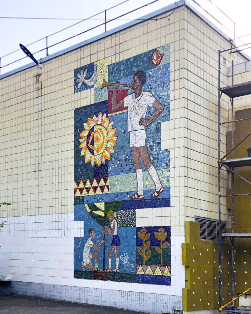 За їх словами, керівництво закладу посилається на те, що на мозаїці зображені діти у піонерських краватках і згідно із законом про декомунізацію, її можна знищувати.