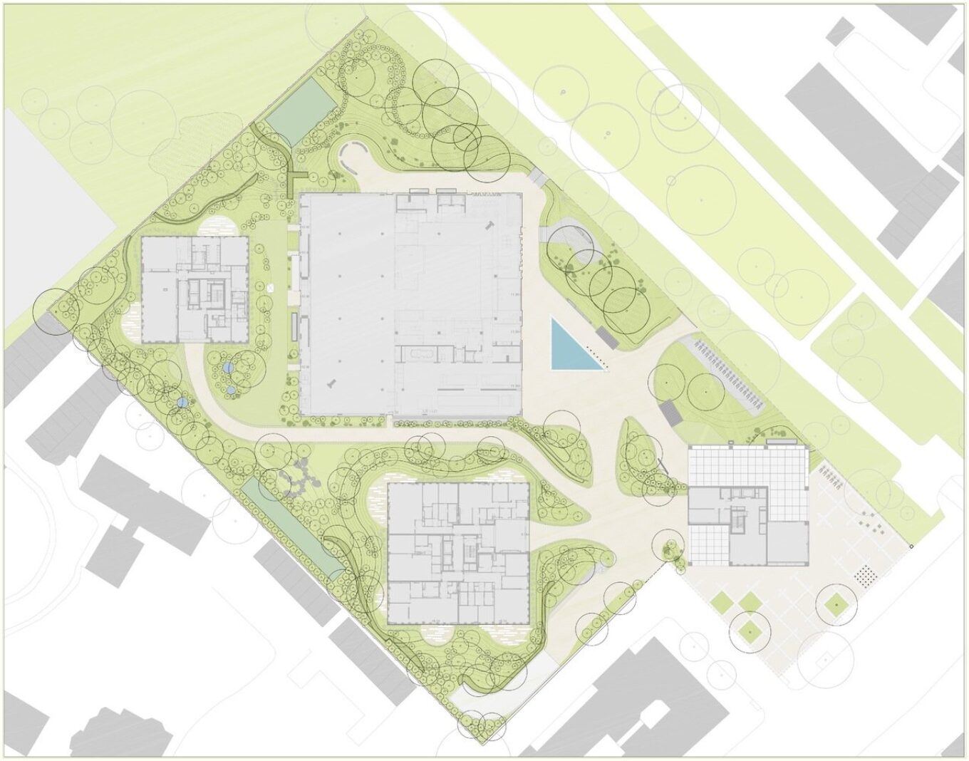 В обновленном здании на площади 10 тысяч кв.м. разместились два основных галерейных пространства, лекционные аудитории, художественные студии, библиотека, архив и ресторан с окнами на Холланд-Парк. Из центрального атриума, стены которого обшиты дубовыми панелями, открывается вид на конструкции знаменитой параболической крыши. Еще одним элементом визуальной идентичности нового интерьера стал яркий дисплей, спроектированный Studio Myerscough.